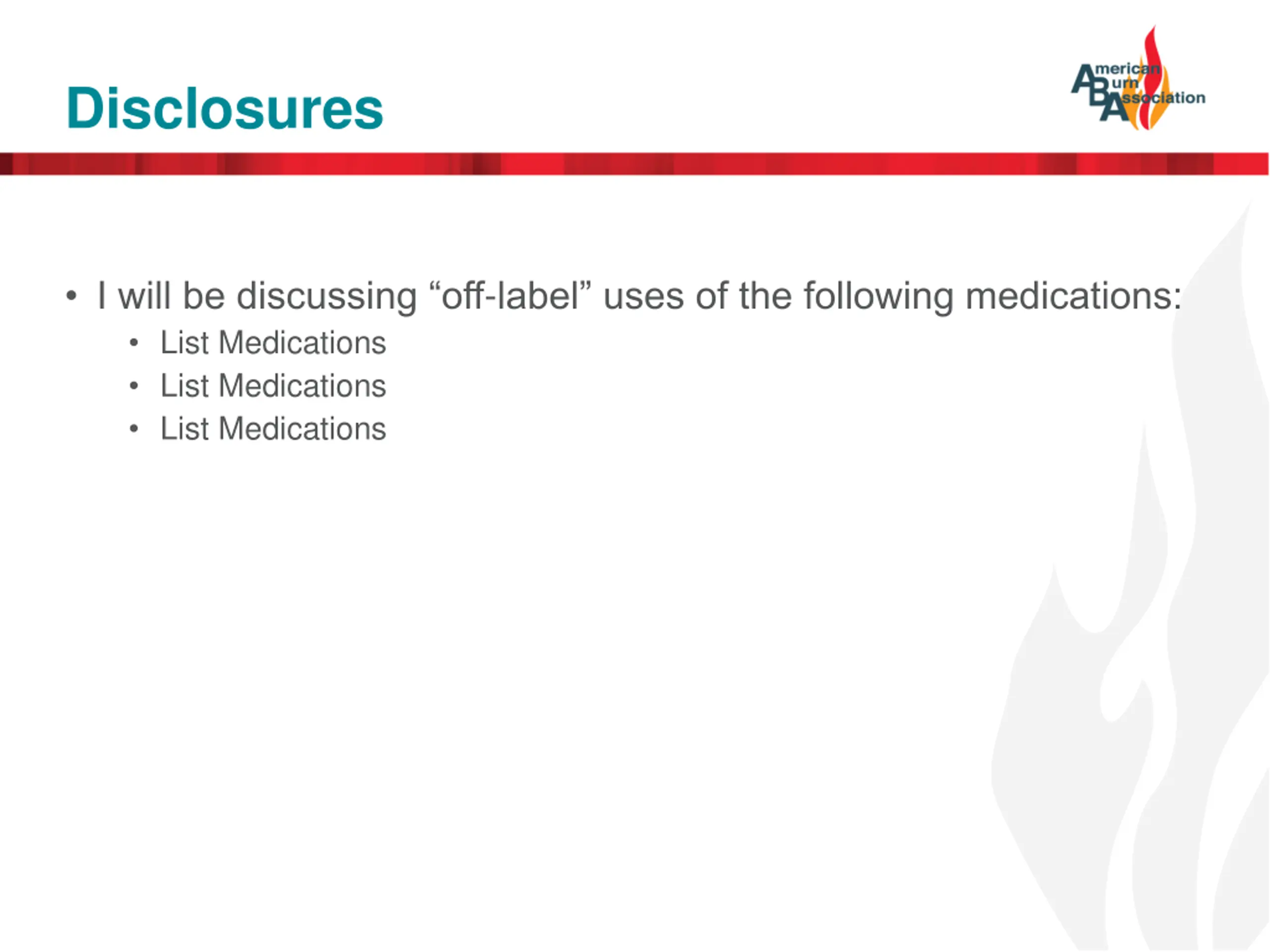 Disclosures I will be discussing off-label uses of the following medications: List Medications List Medications List Medications