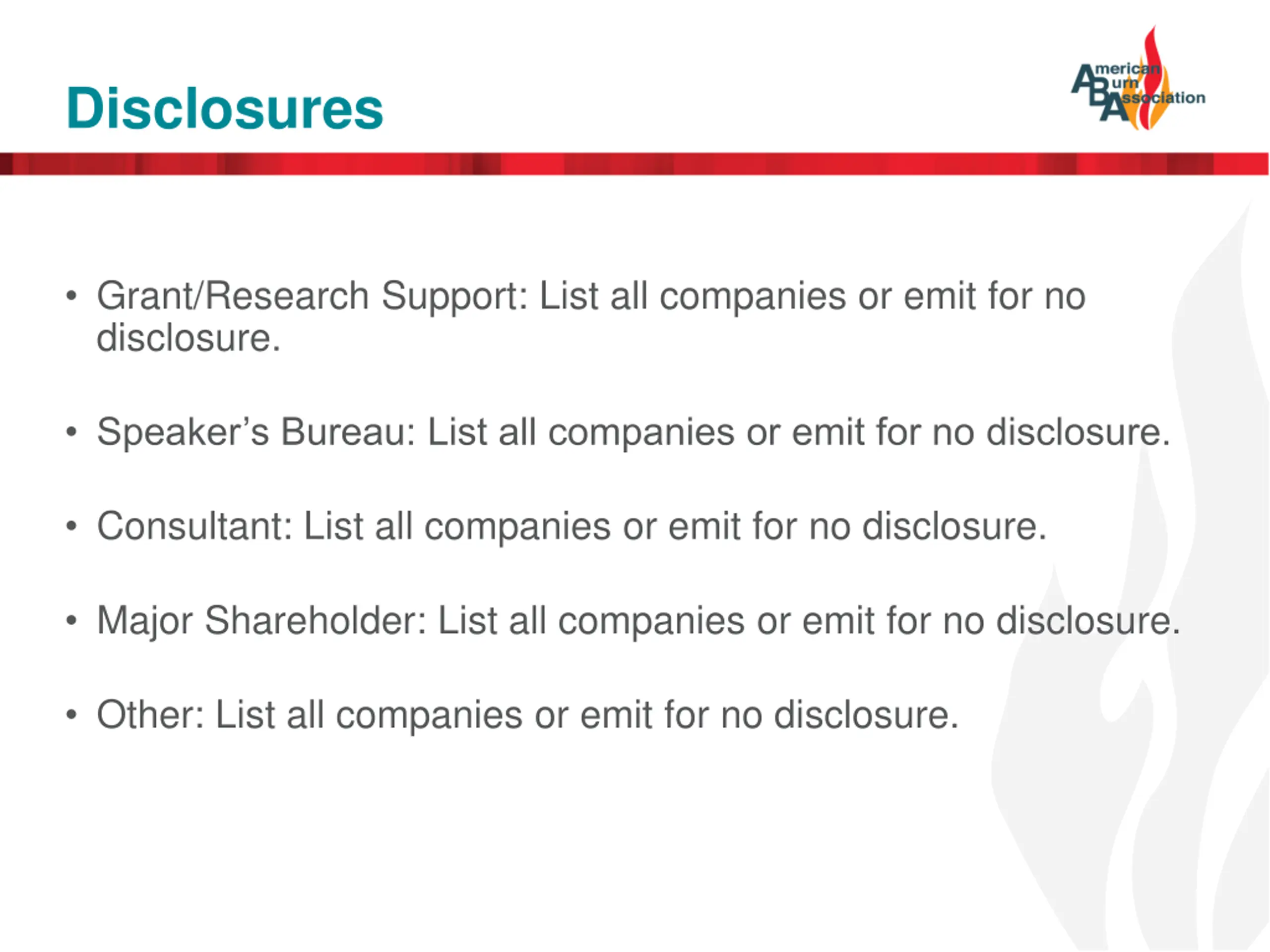 Disclosures Grant/Research Support: List all companies or emit for no disclosure. Speaker s Bureau: List all companies or emit for no disclosure. Consultant: List all companies or emit for no disclosure. Major Shareholder: List all companies or emit for no disclosure. Other: List all companies or emit for no disclosure.