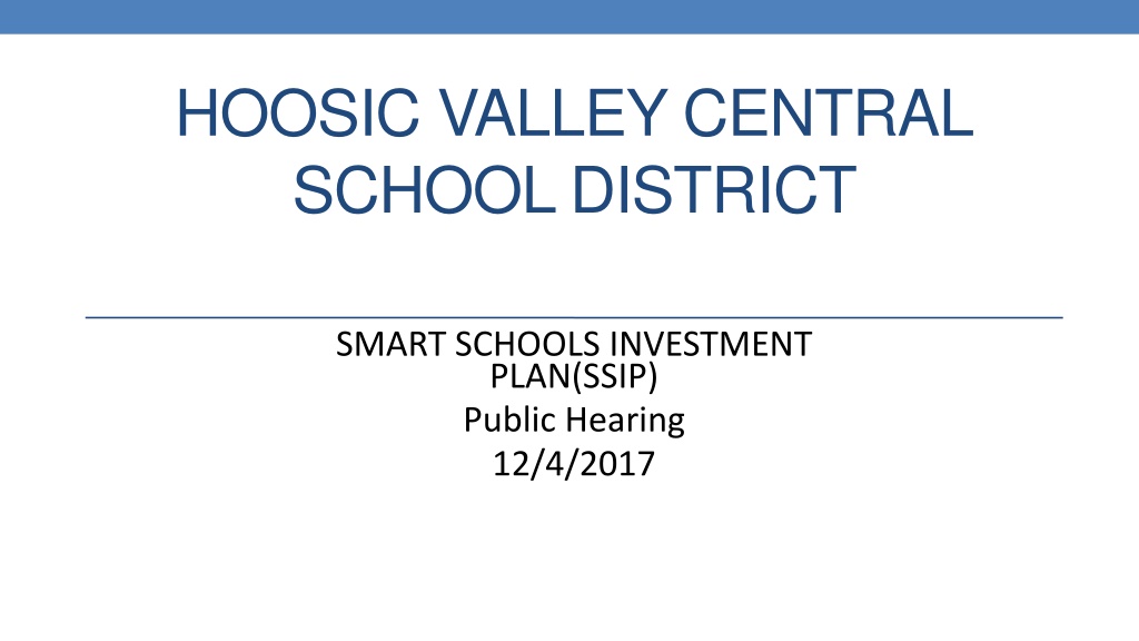 HOOSIC VALLEY CENTRAL SCHOOL DISTRICT SMART SCHOOLS INVESTMENT PLAN(SSIP) Public Hearing 12/4/2017