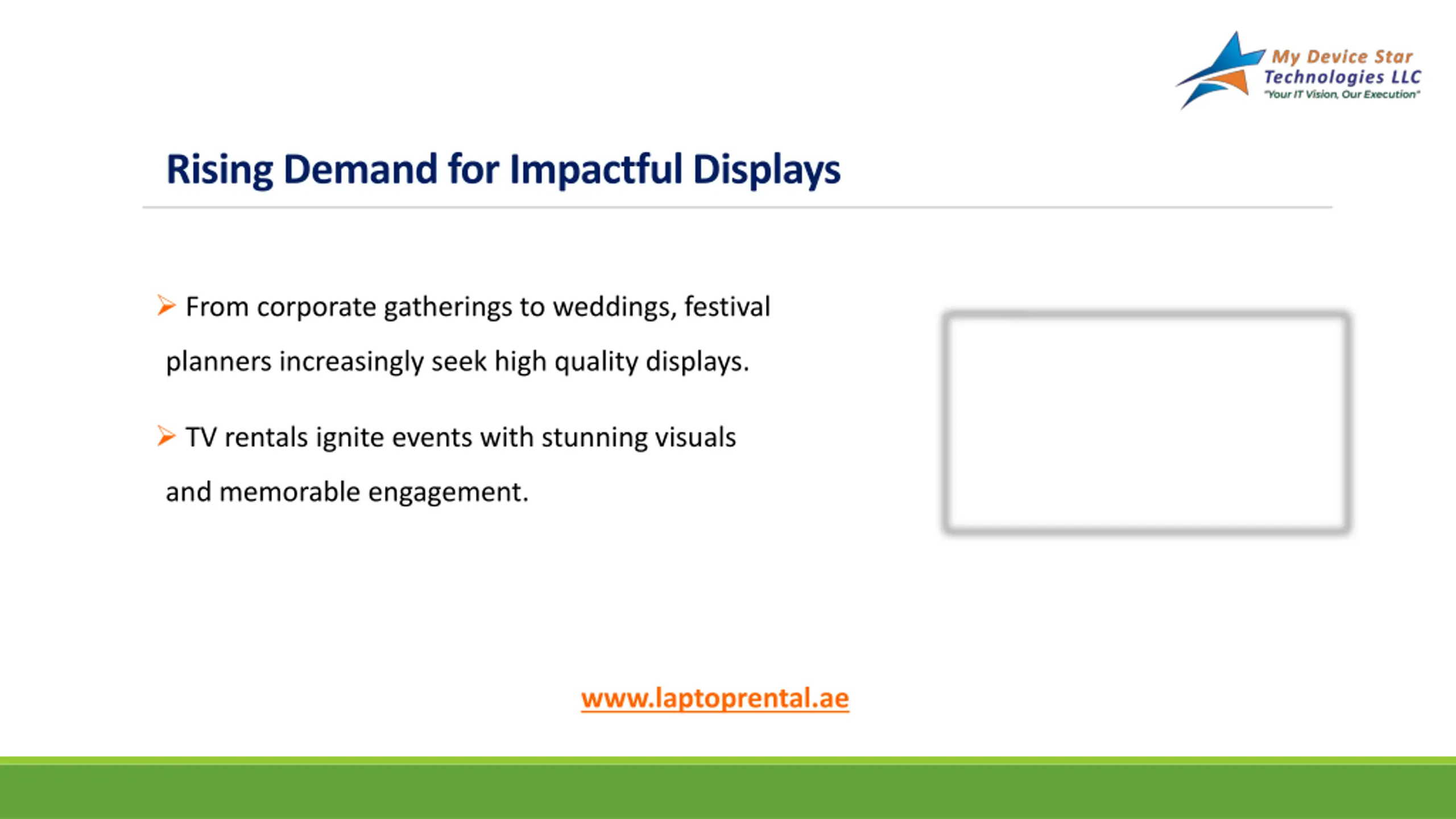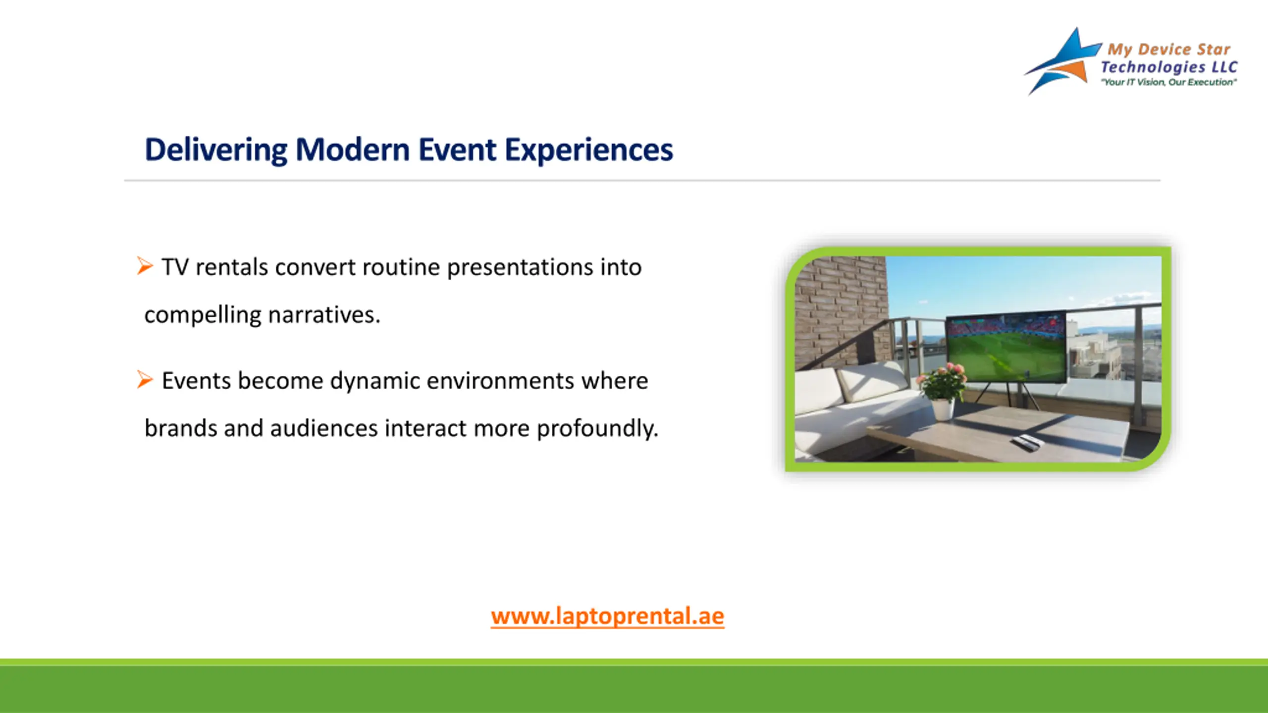 Why TV Rentals Are a Key Event Tool Enhances visual impact and strengthens brand storytelling. Aligns with evolving consumer expectations. Offers immersive, engaging experiences in a budget friendly way. www.laptoprental.ae
