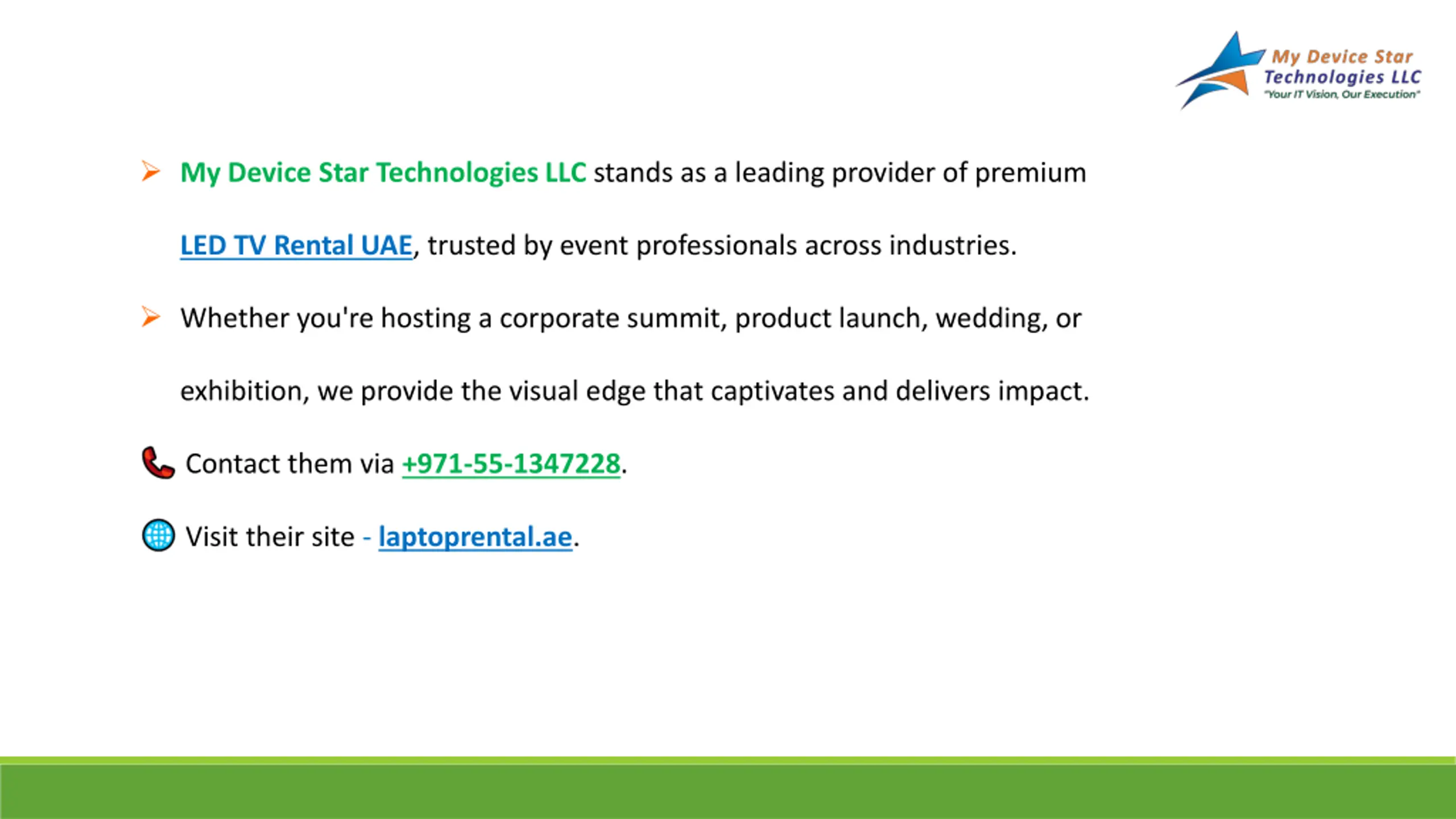 My Device Star Technologies LLC stands as a leading provider of premium LED TV Rental UAE, trusted by event professionals across industries. Whether you're hosting a corporate summit, product launch, wedding, or exhibition, we provide the visual edge that captivates and delivers impact. Contact them via +971-55-1347228. Visit their site - laptoprental.ae.
