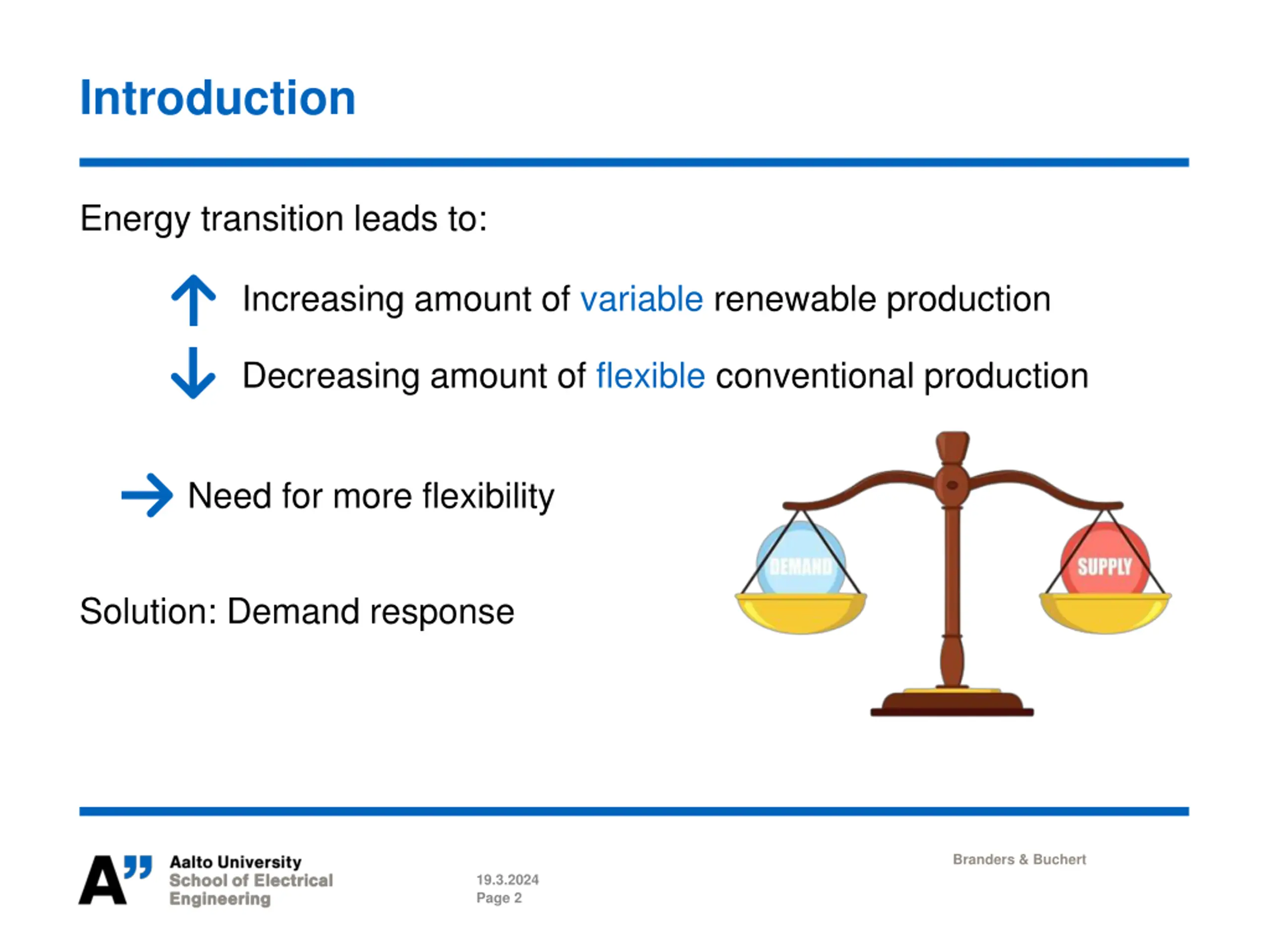 ELEC-E8423 - Smart Grid Demand Response in Power System Energy Balance Management Wilma Branders Rasmus Buchert Branders & Buchert 19.3.2024