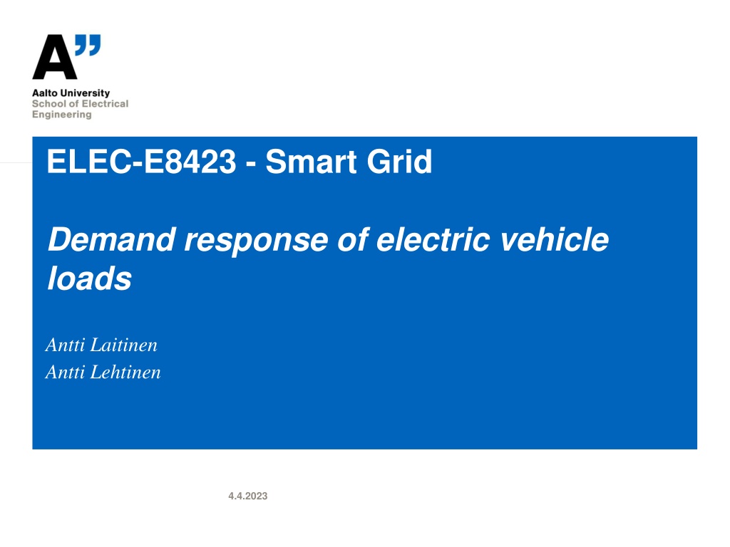 ELEC-E8423 - Smart Grid Demand response of electric vehicle loads Antti Laitinen Antti Lehtinen 4.4.2023