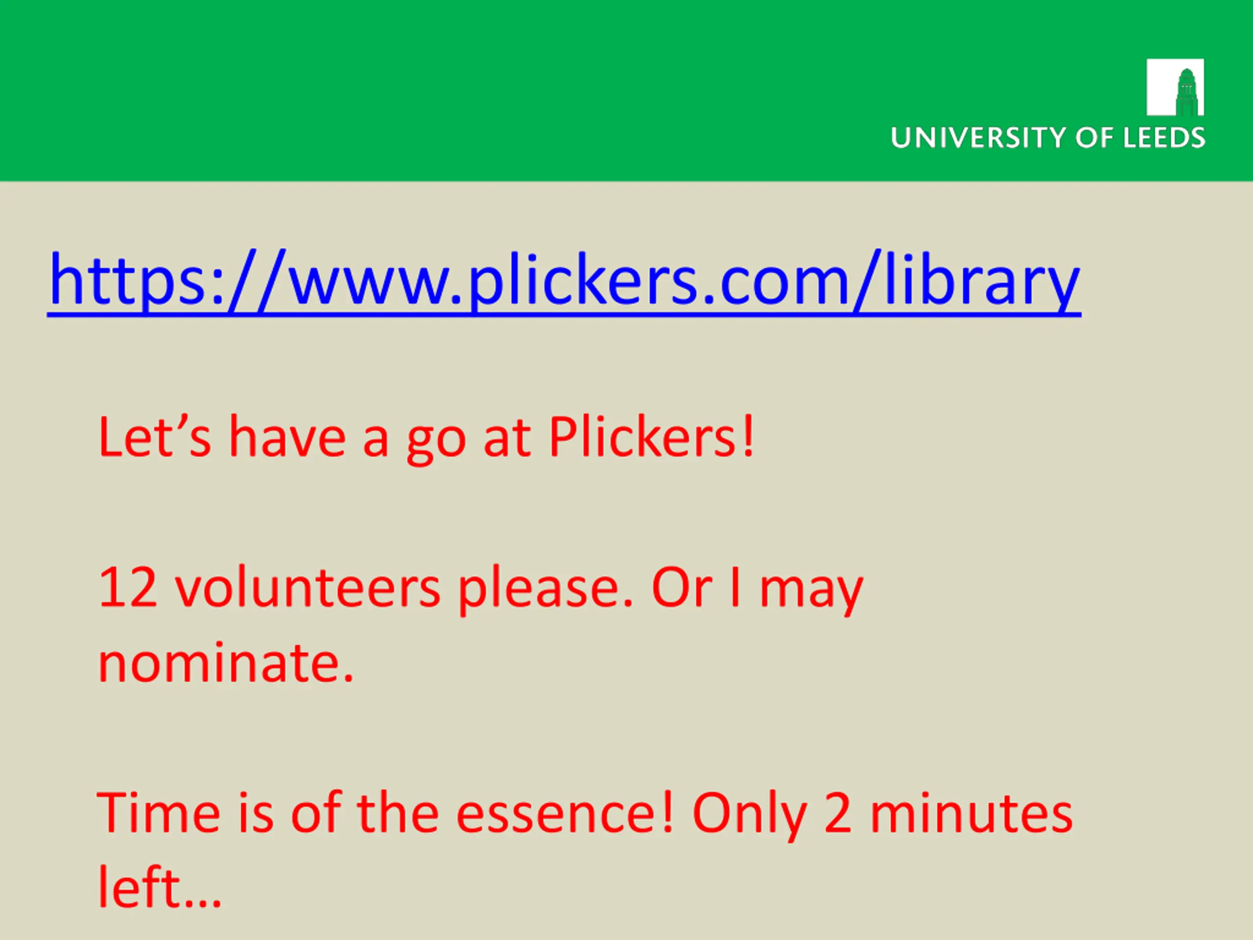 https://www.plickers.com/library Let s have a go at Plickers! 12 volunteers please. Or I may nominate. Time is of the essence! Only 2 minutes left
