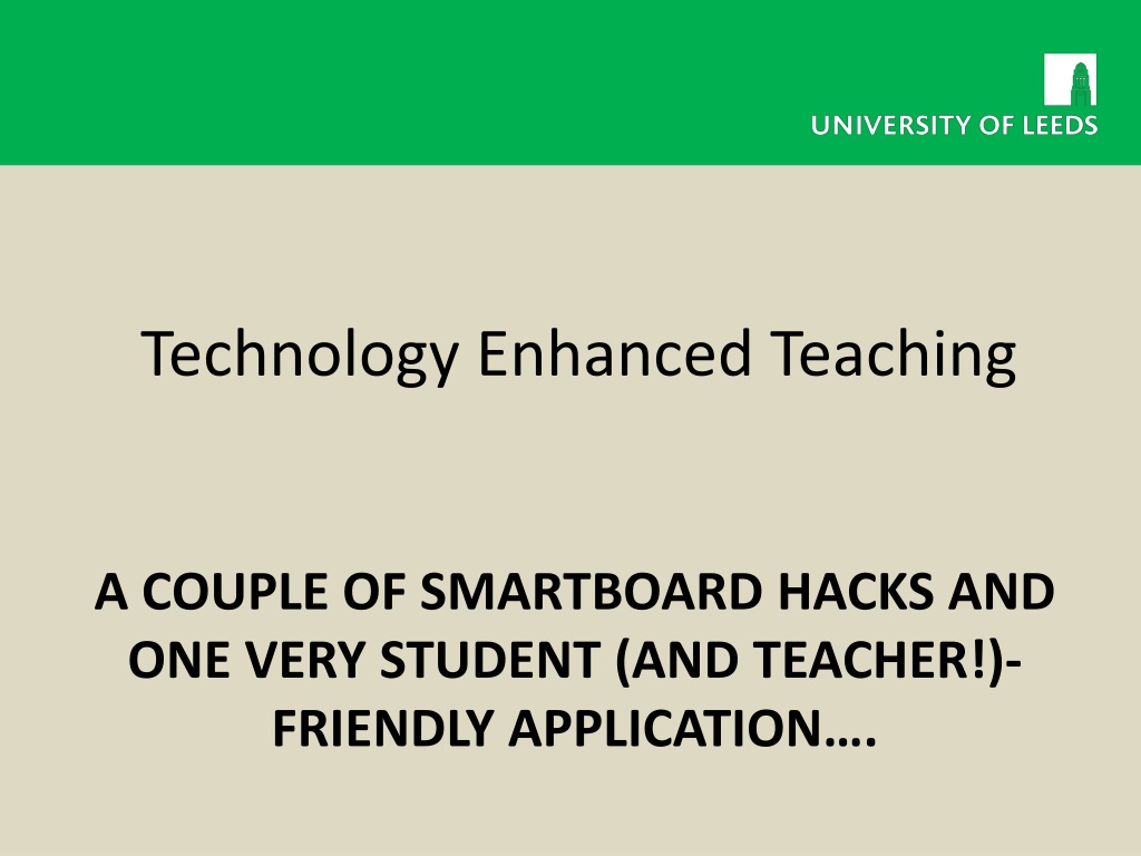 Technology Enhanced Teaching A COUPLE OF SMARTBOARD HACKS AND ONE VERY STUDENT (AND TEACHER!)- FRIENDLY APPLICATION .