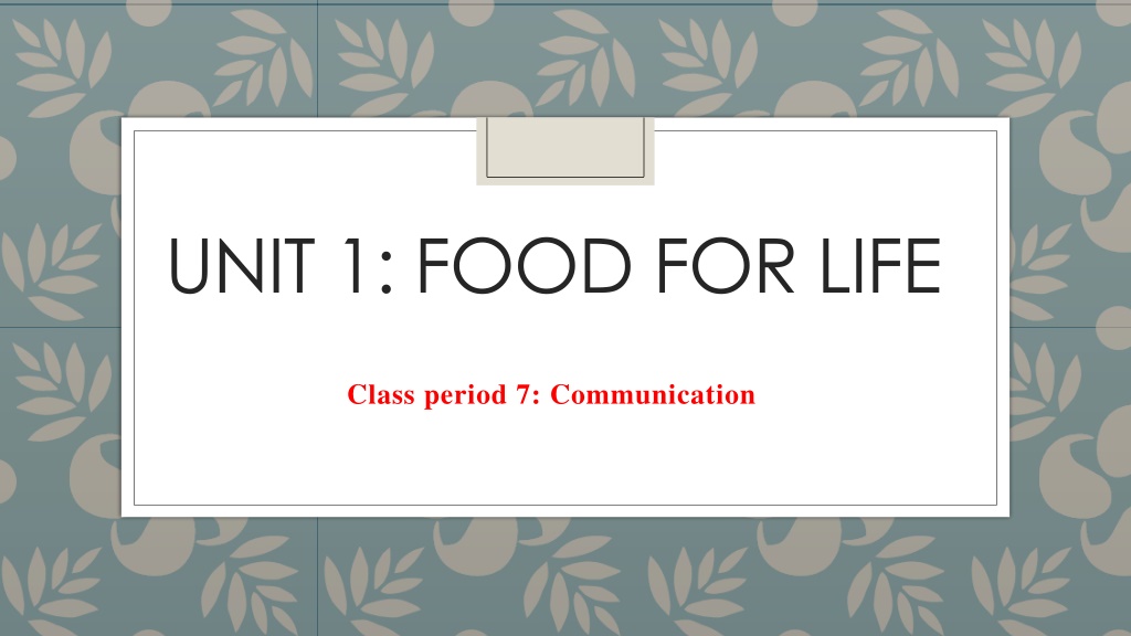 UNIT 1: FOOD FOR LIFE Class period 7: Communication