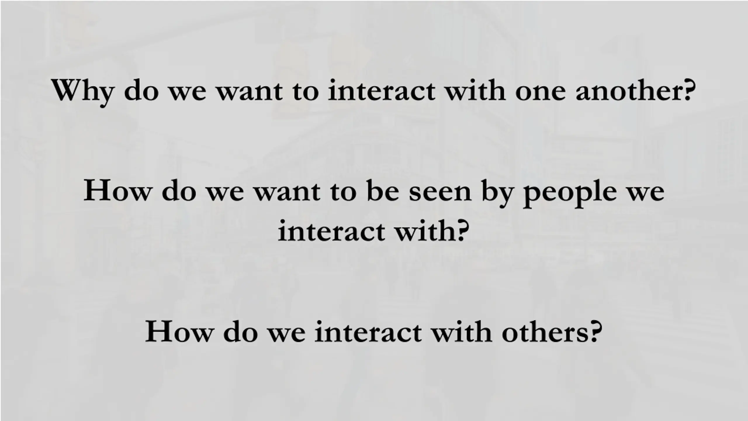 Why do we want to interact with one another? How do we want to be seen by people we interact with? How do we interact with others?