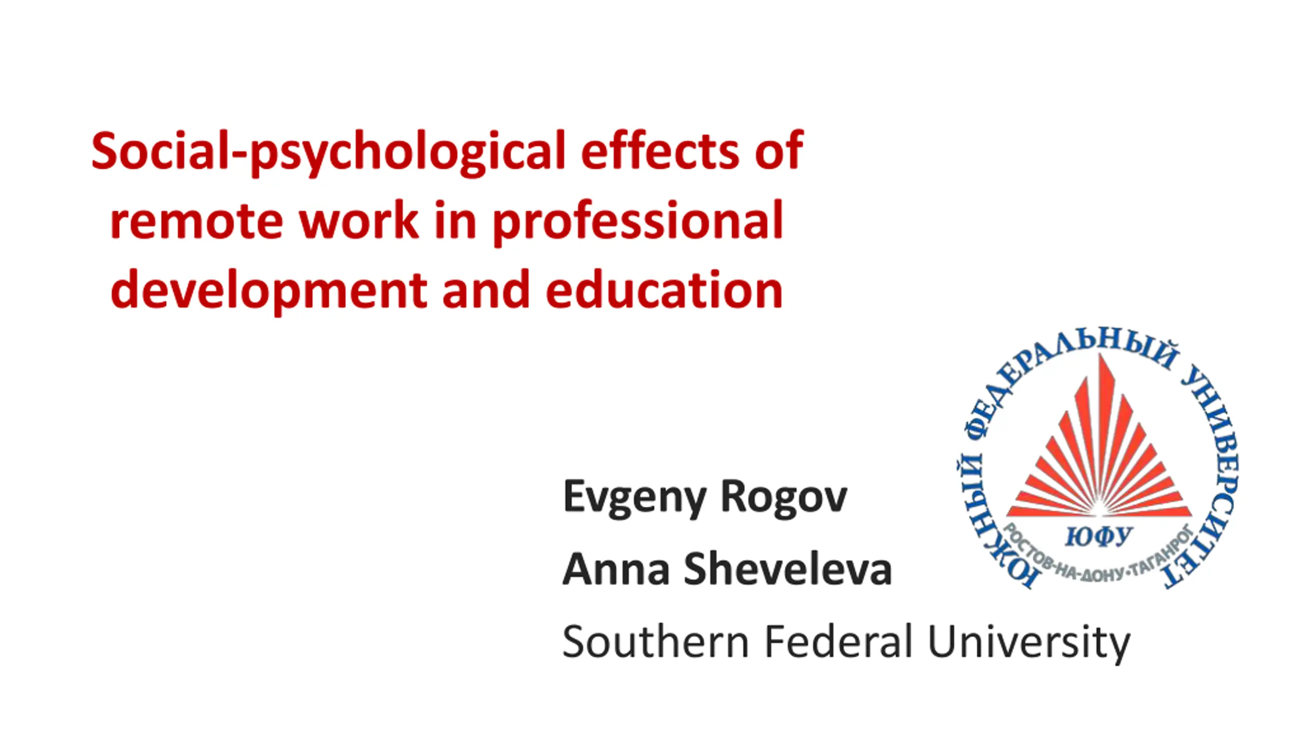 Social-psychological effects of remote work in professional development and education Evgeny Rogov Anna Sheveleva Southern Federal University