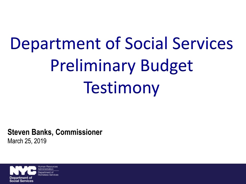 Department of Social Services Preliminary Budget Testimony Steven Banks, Commissioner March 25, 2019