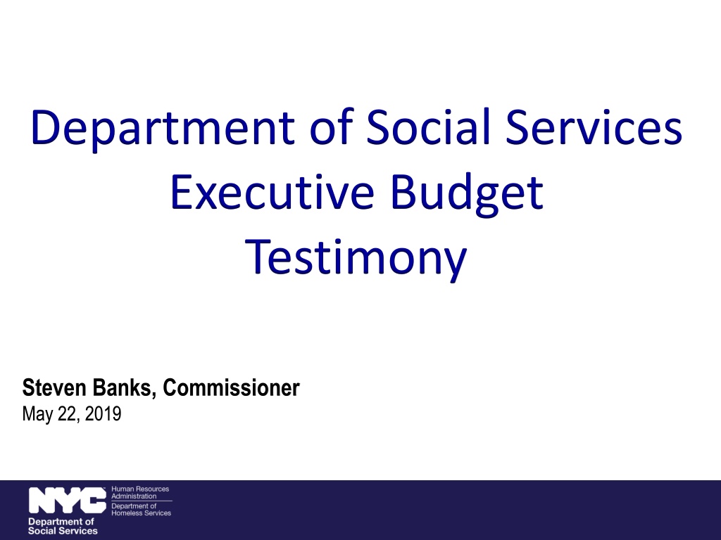 Department of Social Services Executive Budget Testimony Steven Banks, Commissioner May 22, 2019