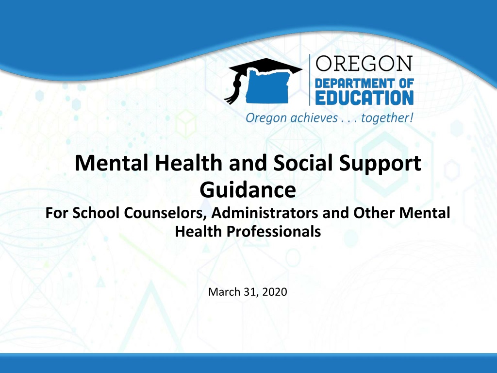 Mental Health and Social Support Guidance For School Counselors, Administrators and Other Mental Health Professionals March 31, 2020