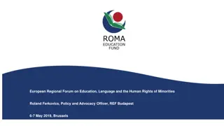 GOOD PRACTICE EXAMPLES: EDUCATION OF ROMA IN SERBIA PRESCHOOL, PRIMARY SCHOOL: - (Roma) teaching assistants: 1997, 2006, 2009; AURO module for teachers SECONDARY & TERTIARY: - Equal opportunities in secondary education, 2005 - 1000 scholarships for poor h.s. pupils and University students, 2007 - EQUIED ADULT EDUCATION Functional basic education for adult Roma, 2006: vocational trainings: 53 out of 168 employeed + trainings for enterpreneurship-related topics for vulnerable groups Project FINALLY Project reference number: 527860-LLP-1-2012-1-SI-GRUNTVIG-GMP