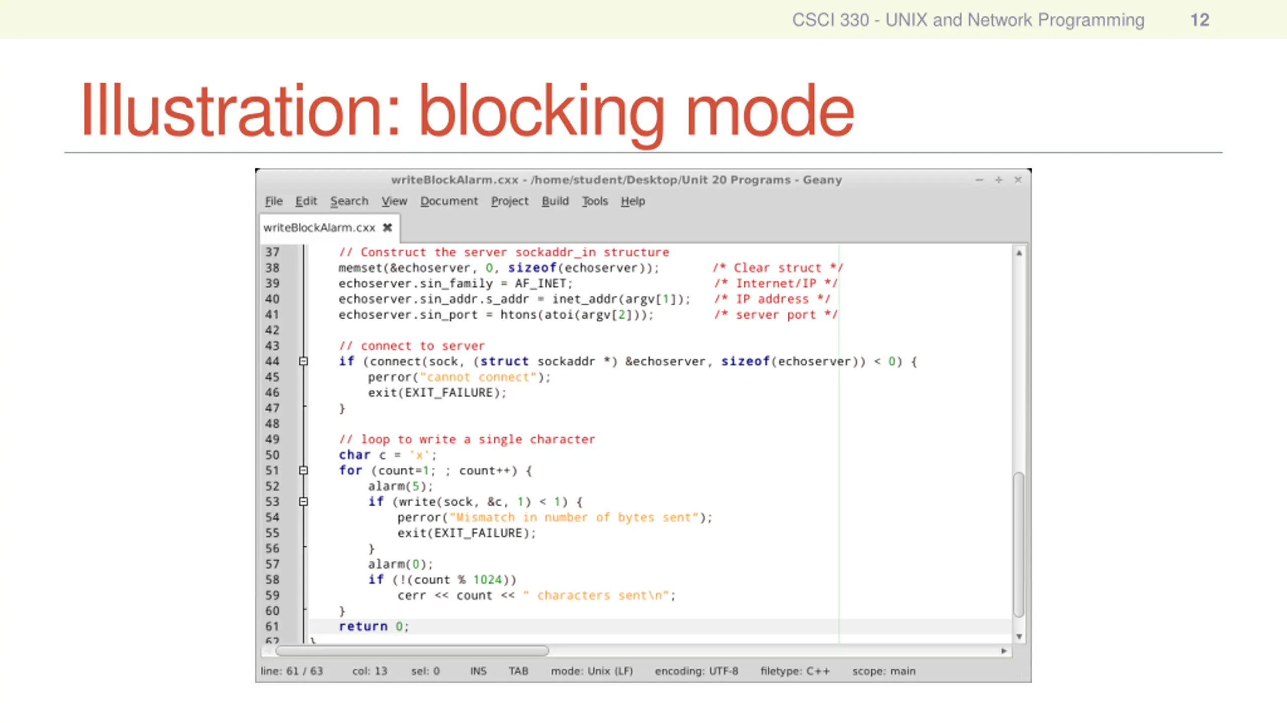 CSCI 330 - UNIX and Network Programming 12 Illustration: blocking mode