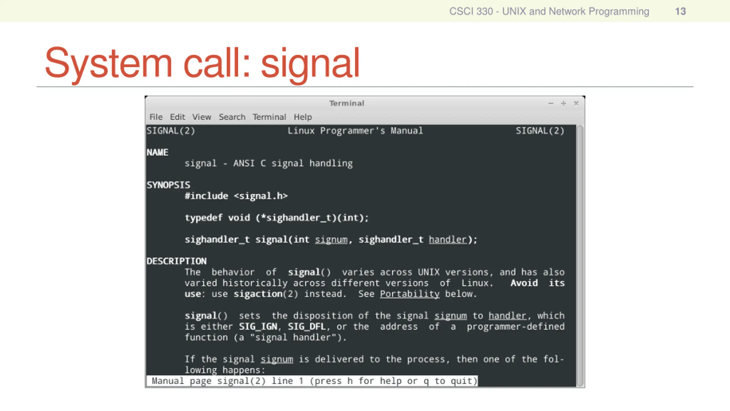 CSCI 330 - UNIX and Network Programming 13 System call: signal