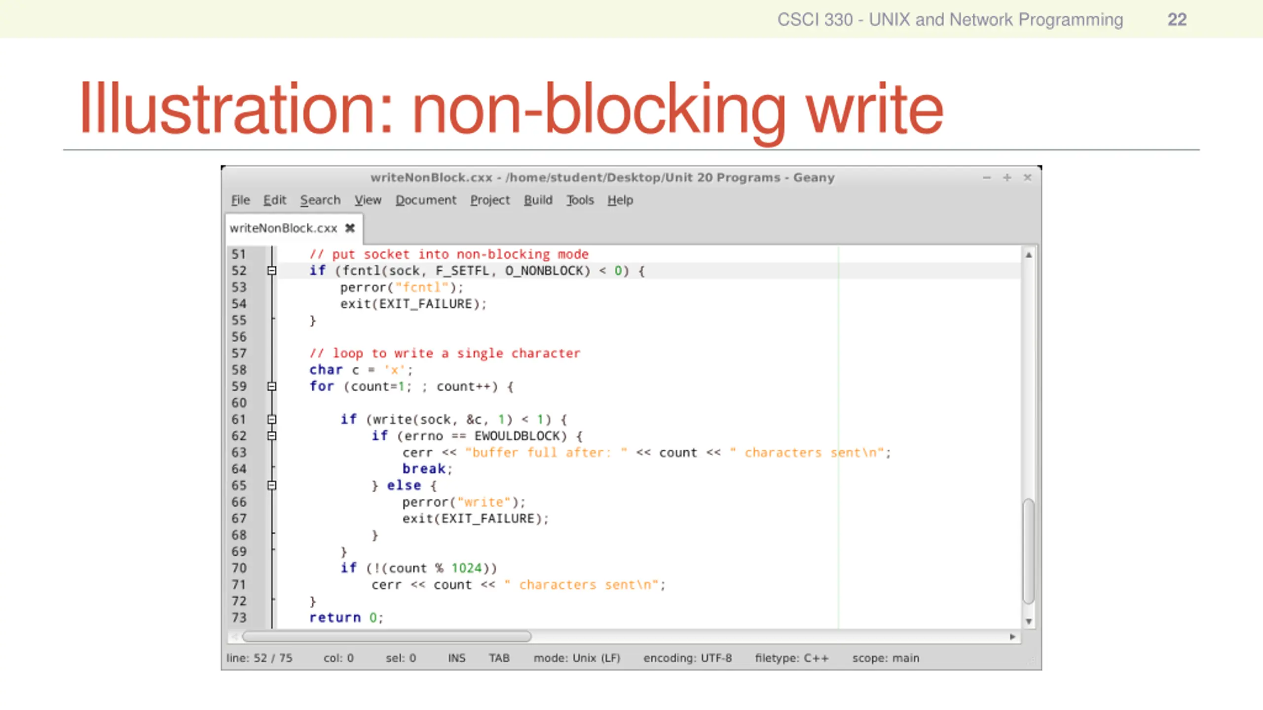 CSCI 330 - UNIX and Network Programming 22 Illustration: non-blocking write