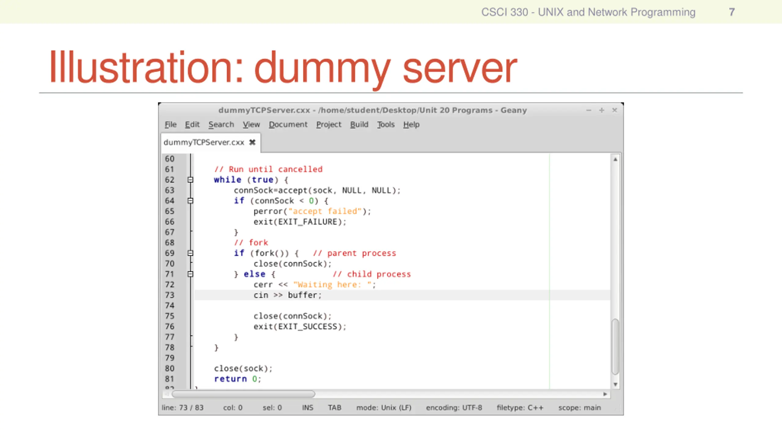 CSCI 330 - UNIX and Network Programming 7 Illustration: dummy server
