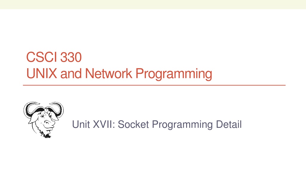 CSCI 330 UNIX and Network Programming Unit XVII: Socket Programming Detail