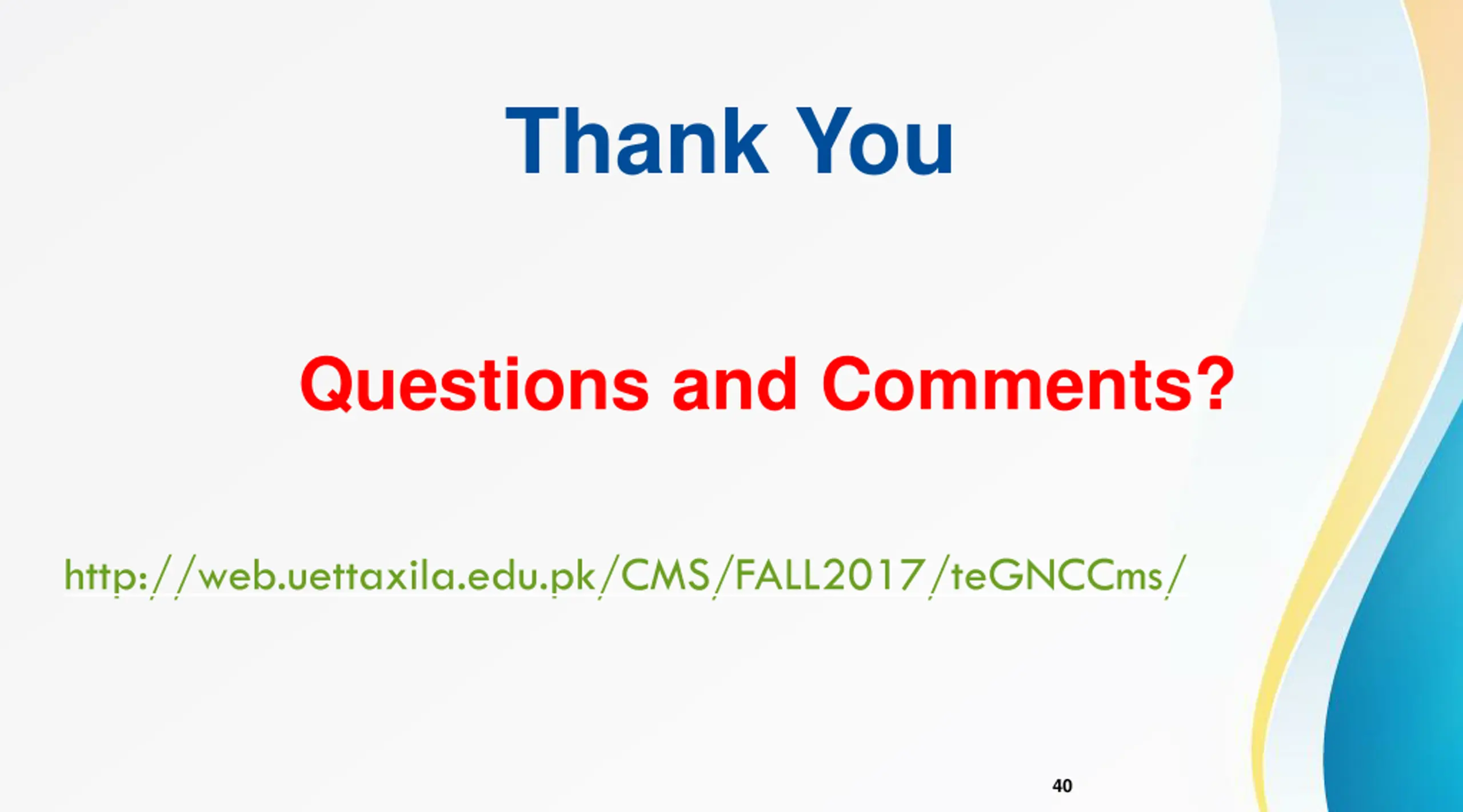 Thank You Questions and Comments? http://web.uettaxila.edu.pk/CMS/FALL2017/teGNCCms/ 40