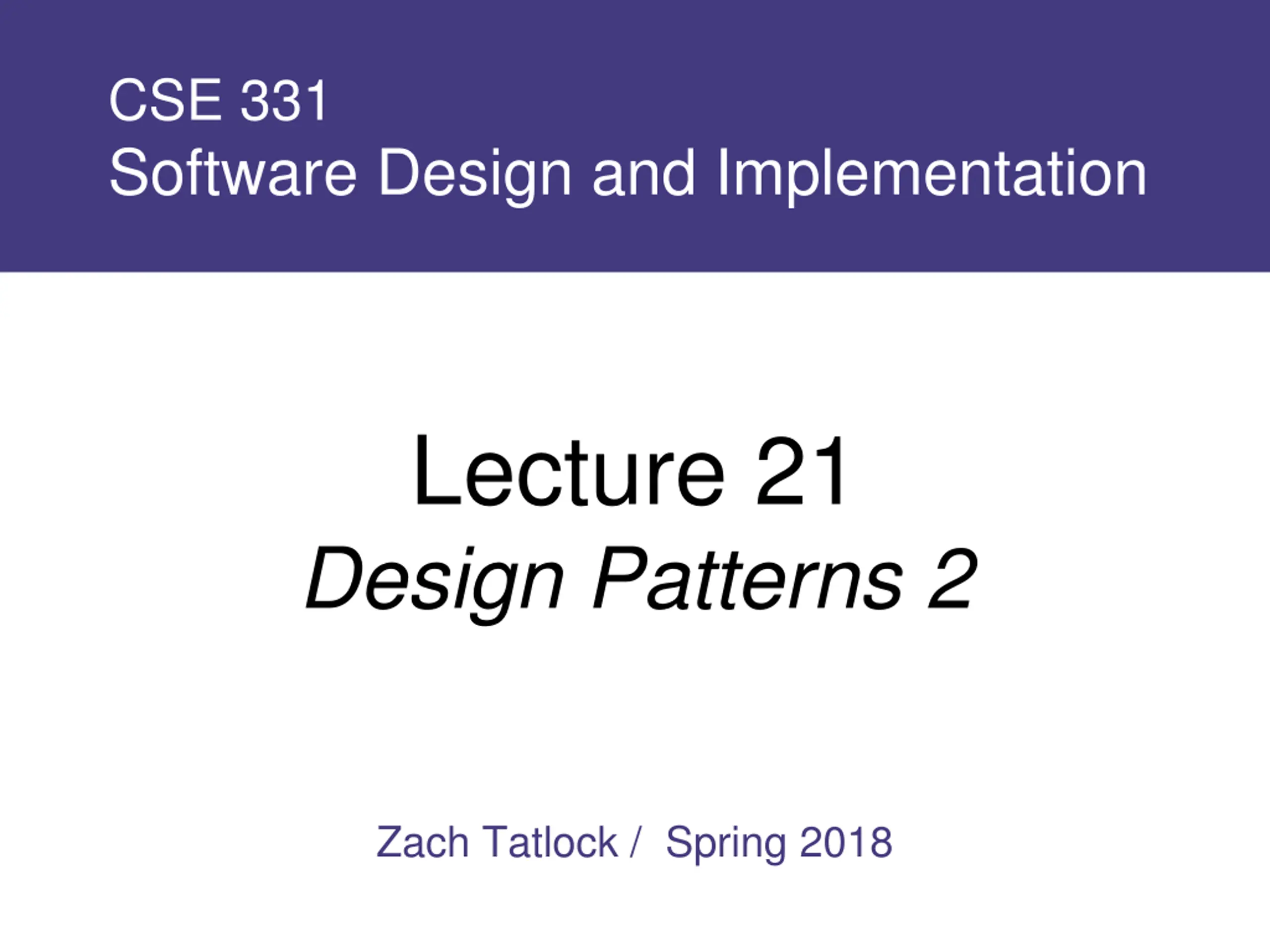 CSE 331 Software Design and Implementation Lecture 21 Design Patterns 2 Zach Tatlock / Spring 2018