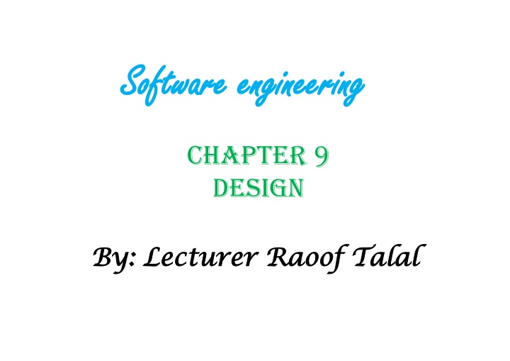 Software engineering Software engineering Chapter 9 DEsign By: Lecturer By: Lecturer Raoof Raoof Talal Talal