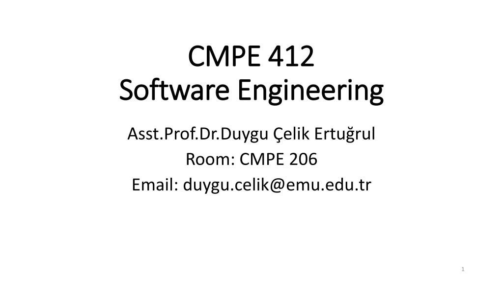 CMPE 412 CMPE 412 Software Engineering Software Engineering Asst.Prof.Dr.Duygu elik Ertu rul Room: CMPE 206 Email: duygu.celik@emu.edu.tr 1