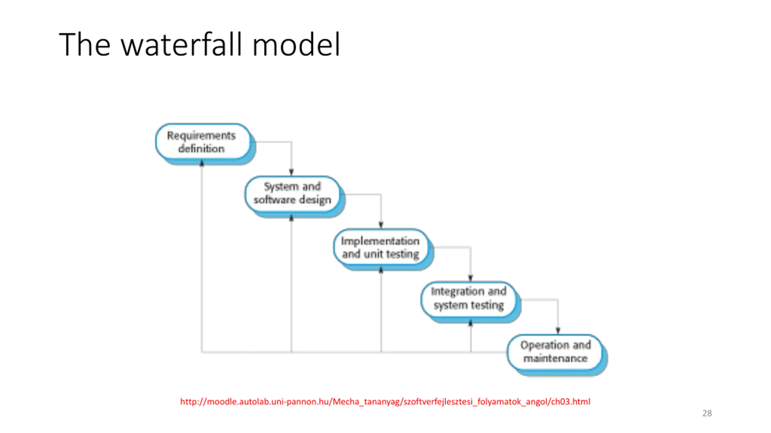The waterfall model http://moodle.autolab.uni-pannon.hu/Mecha_tananyag/szoftverfejlesztesi_folyamatok_angol/ch03.html 28
