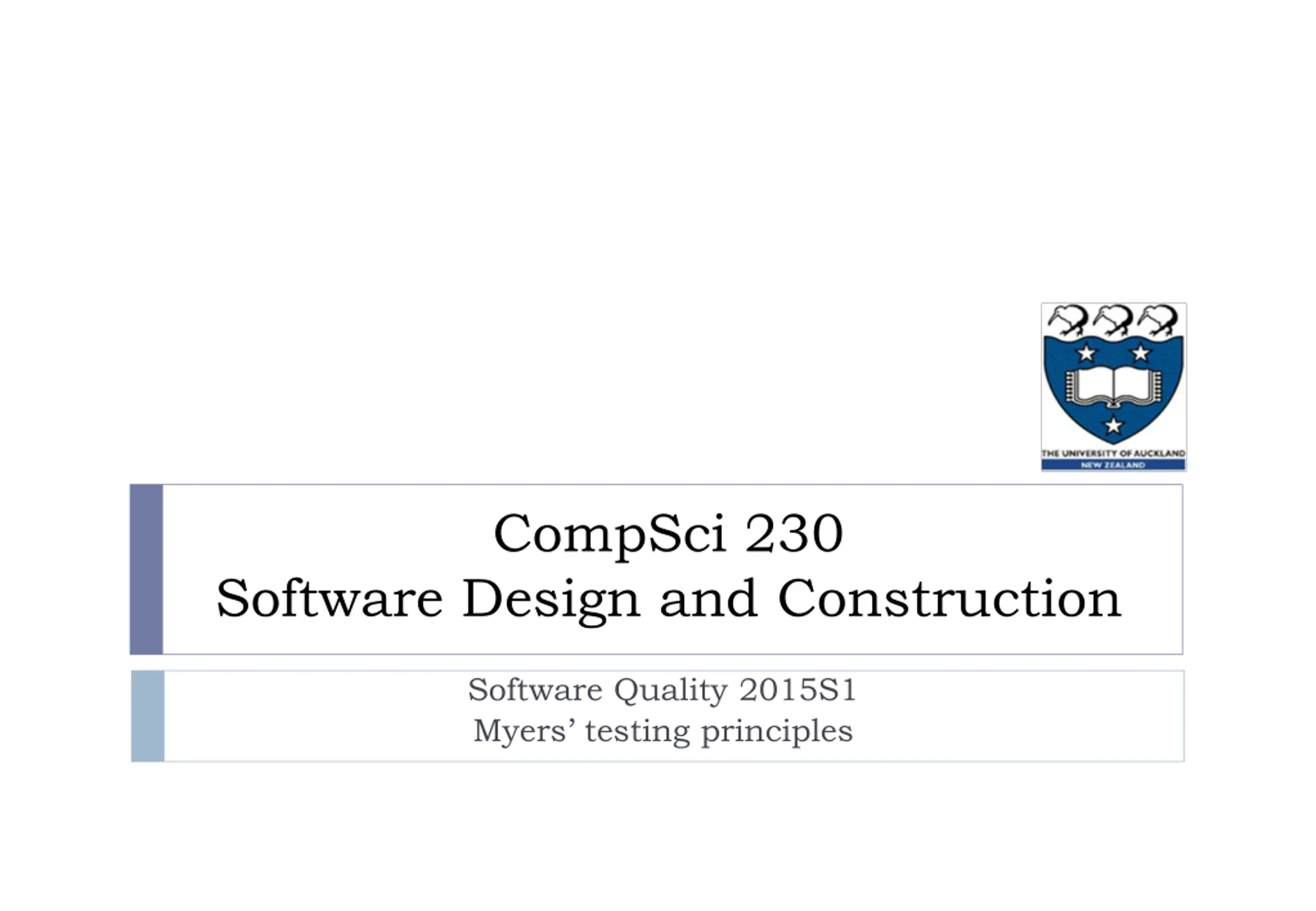 CompSci 230 Software Design and Construction Software Quality 2015S1 Myers testing principles