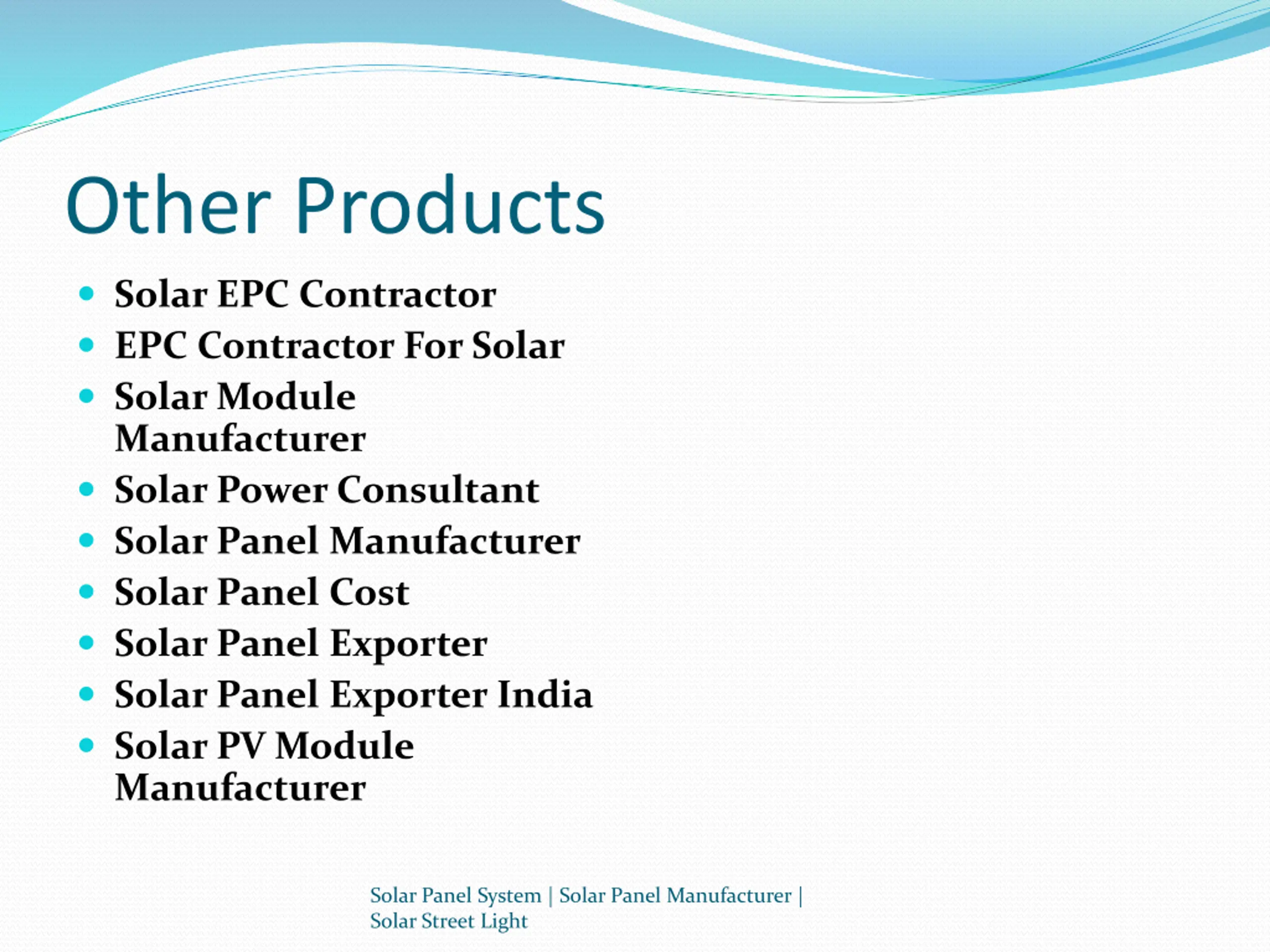 Other Products Solar EPC Contractor EPC Contractor For Solar Solar Module Manufacturer Solar Power Consultant Solar Panel Manufacturer Solar Panel Cost Solar Panel Exporter Solar Panel Exporter India Solar PV Module Manufacturer Solar Panel System | Solar Panel Manufacturer | Solar Street Light