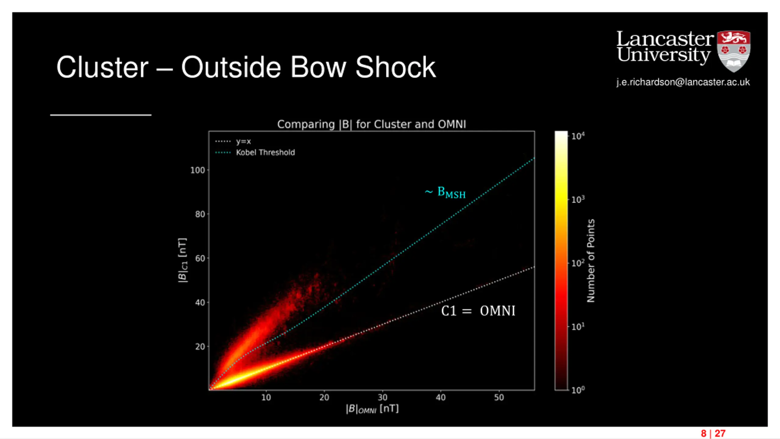 Cluster Outside Bow Shock j.e.richardson@lancaster.ac.uk BMSH C1 = OMNI 8 | 27