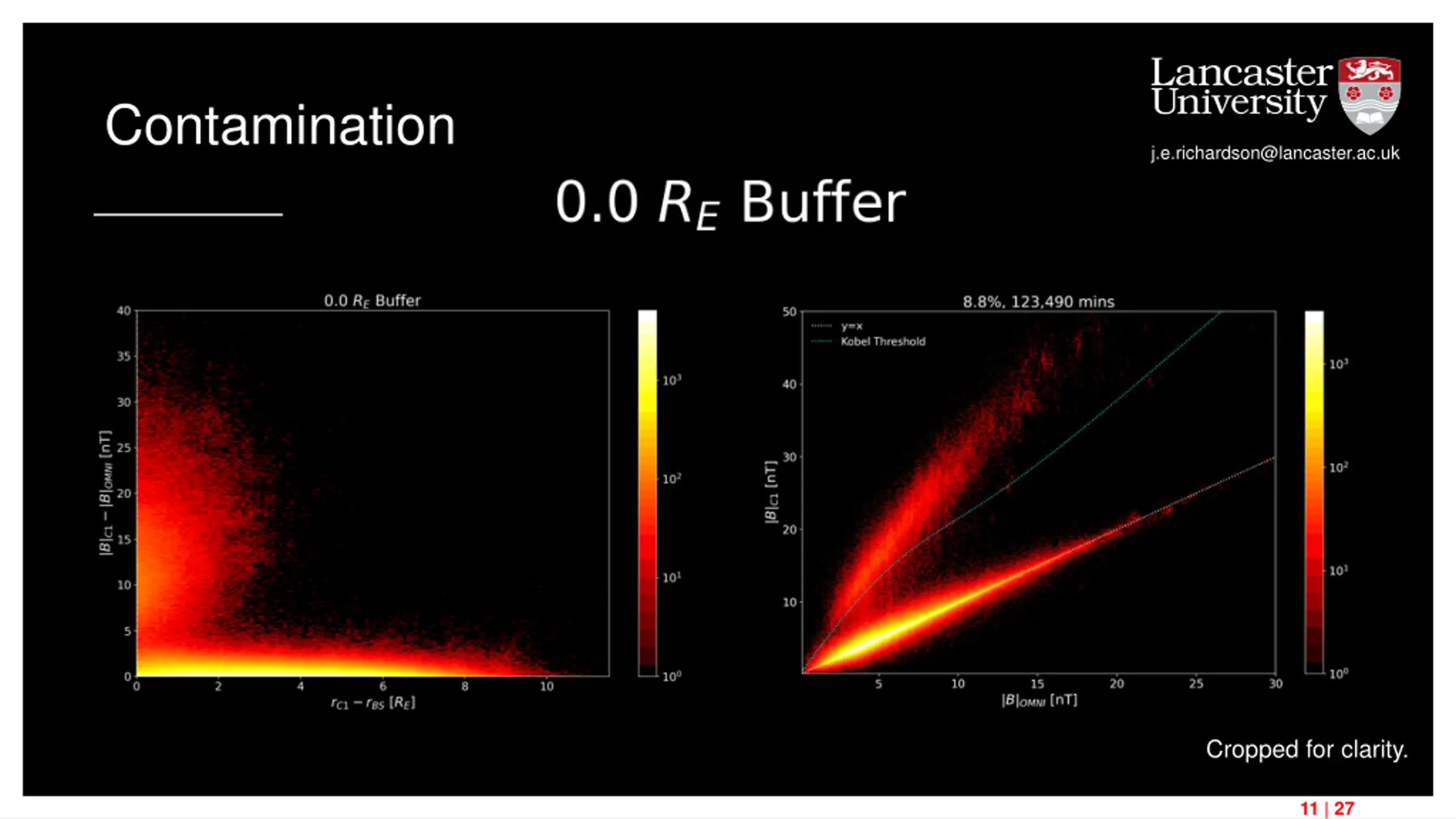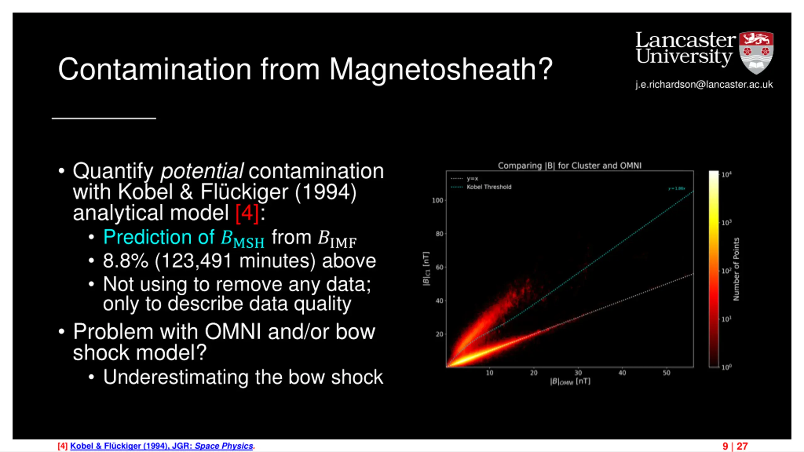 Contamination from Magnetosheath? j.e.richardson@lancaster.ac.uk ?C1 ?OMNI vs. ?C1 ?BS C1 OMNI Close to BS 10 | 27 [4] Kobel & Fl ckiger (1994), JGR: Space Physics.