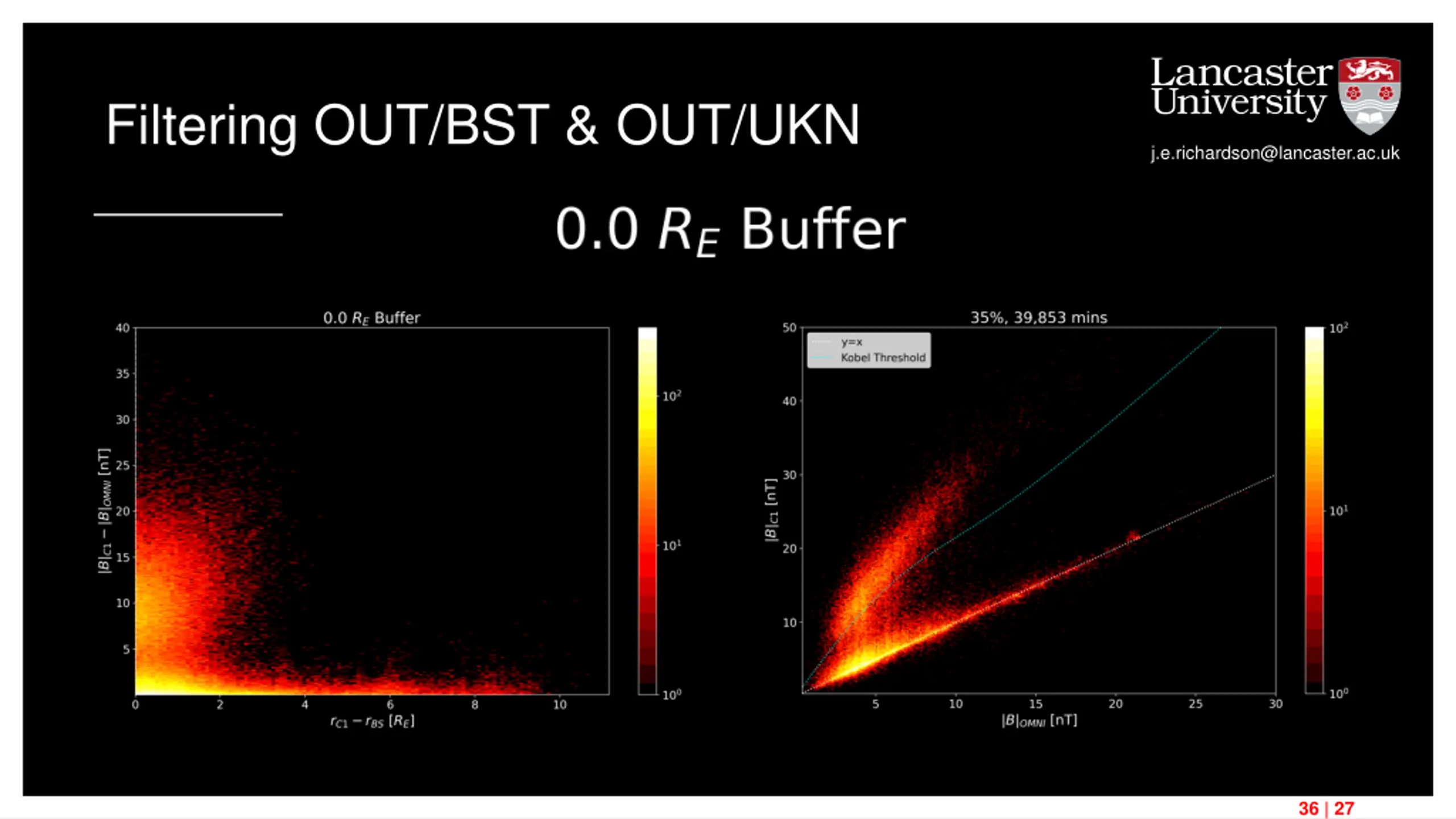 Comparing Datasets j.e.richardson@lancaster.ac.uk OMNI All Cluster Data Van Allen Belt crossings Figure 15 37 | 27