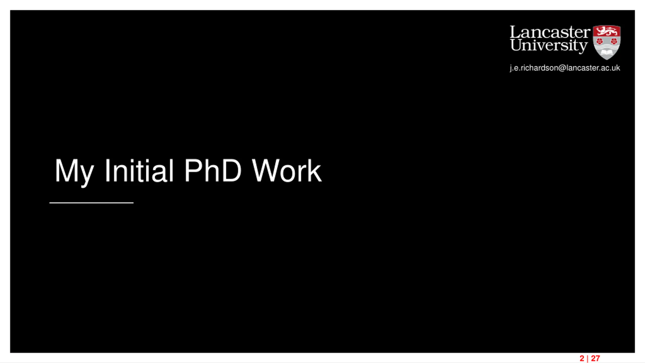 j.e.richardson@lancaster.ac.uk My Initial PhD Work 2 | 27