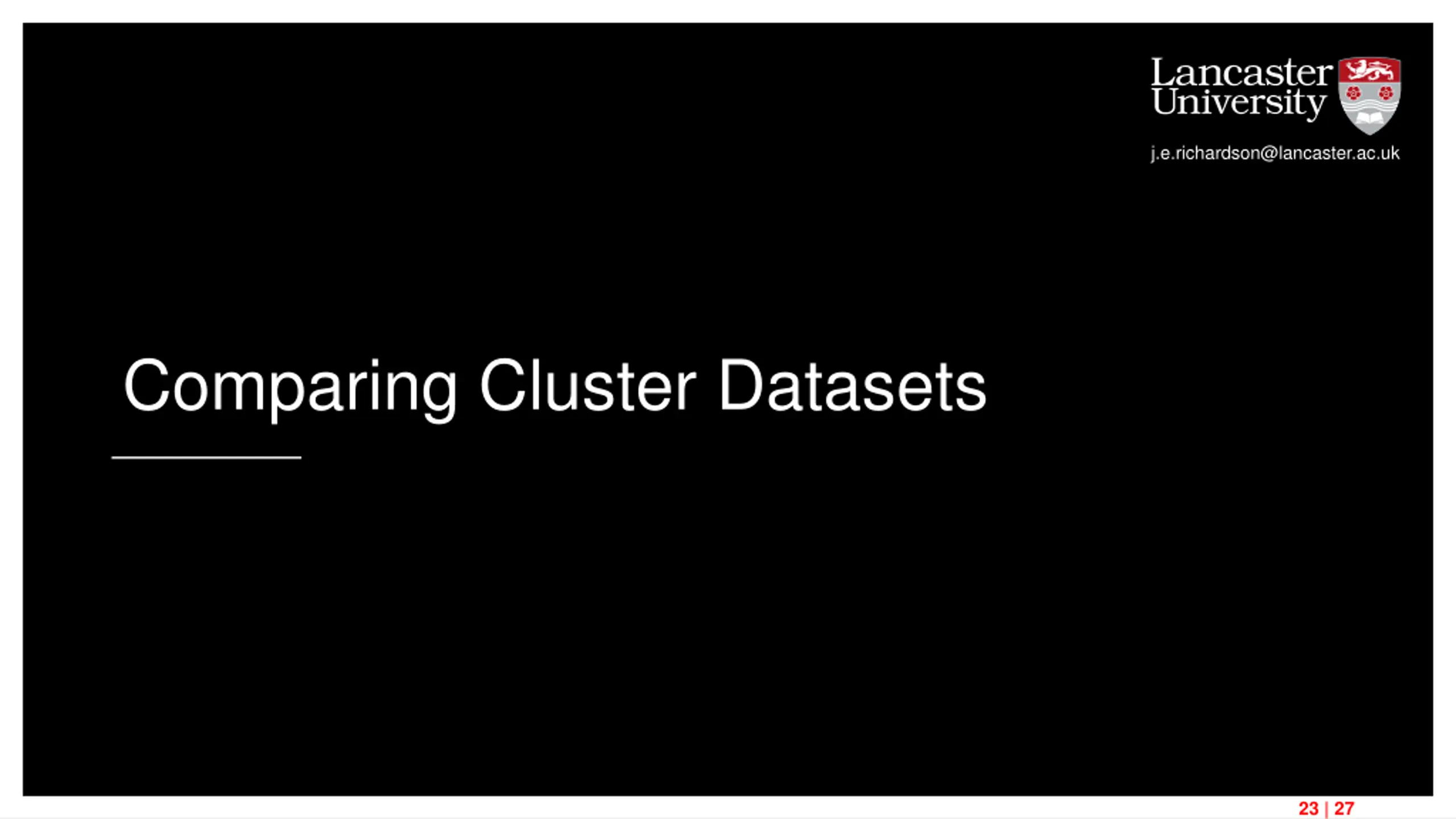 j.e.richardson@lancaster.ac.uk Comparing Cluster Datasets 23 | 27