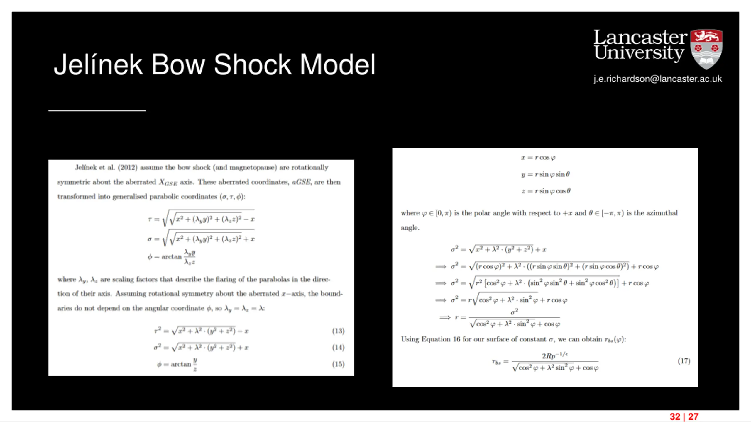 Jelnek Bow Shock Model j.e.richardson@lancaster.ac.uk 32 | 27