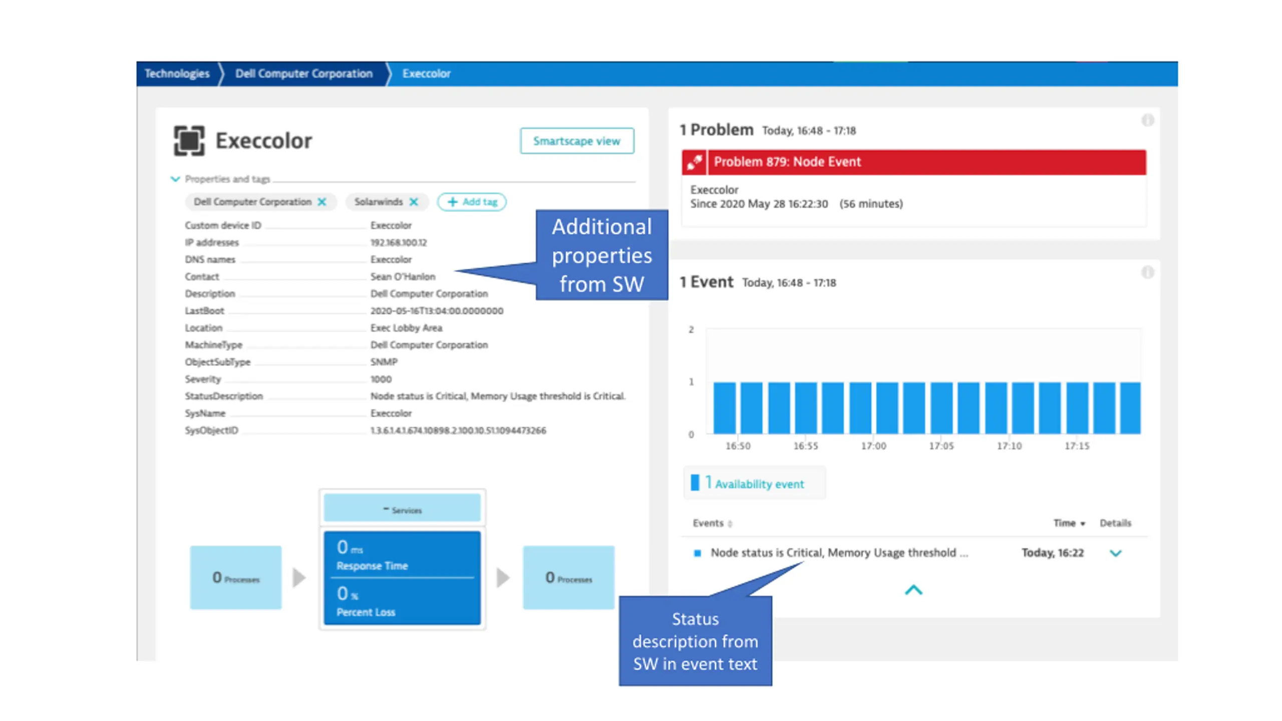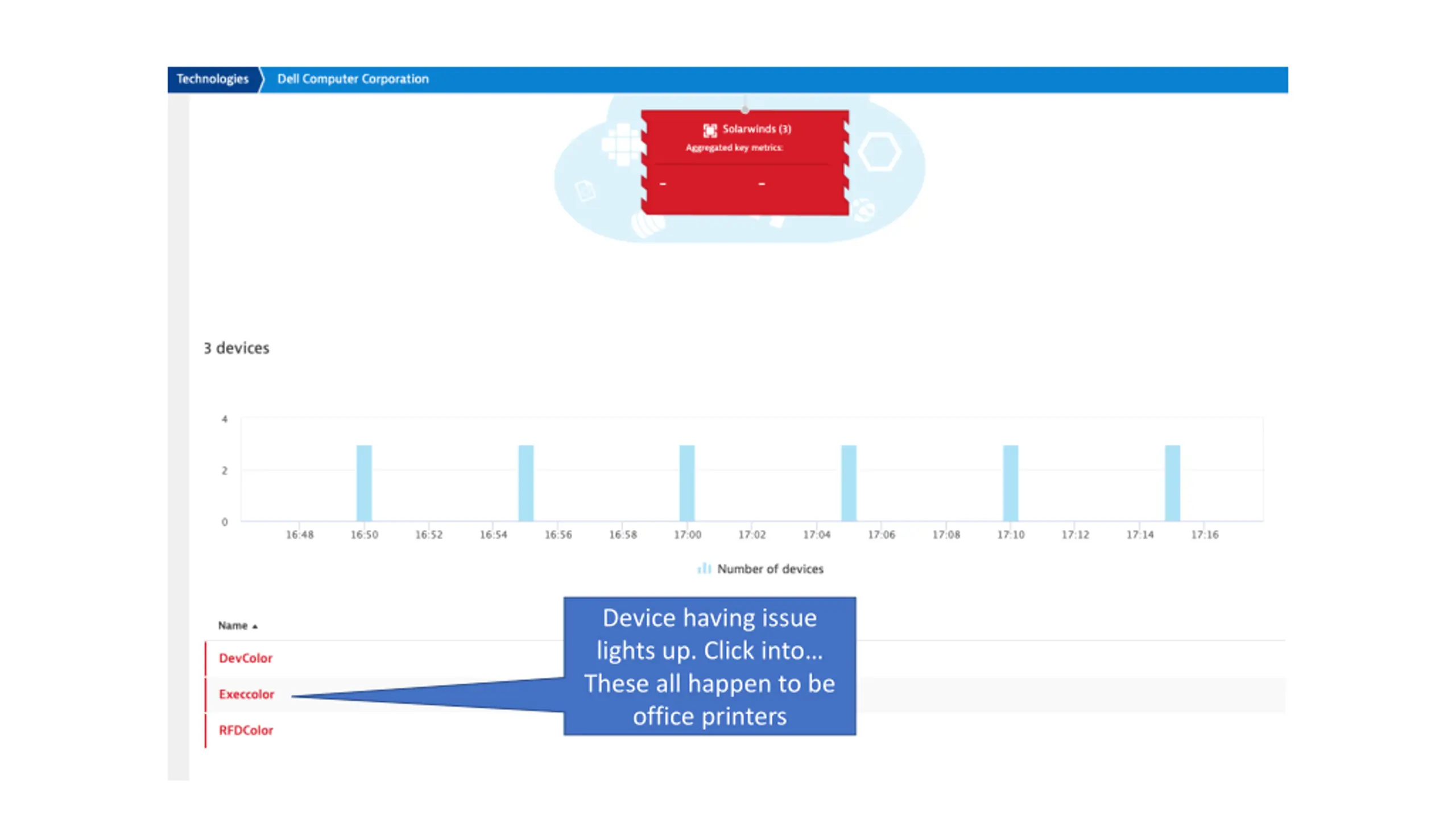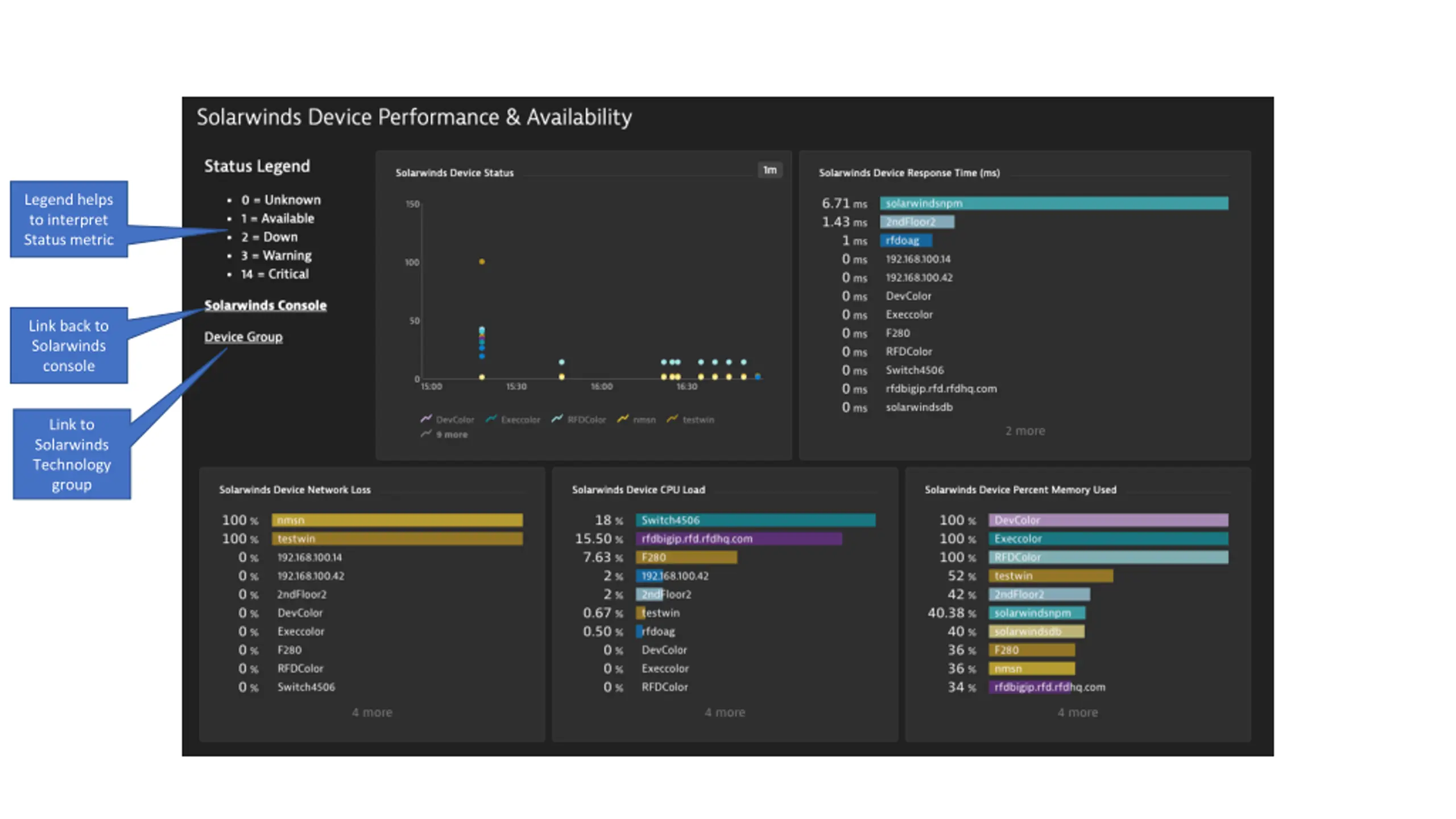 Legend helps to interpret Status metric Link back to Solarwinds console Link to Solarwinds Technology group