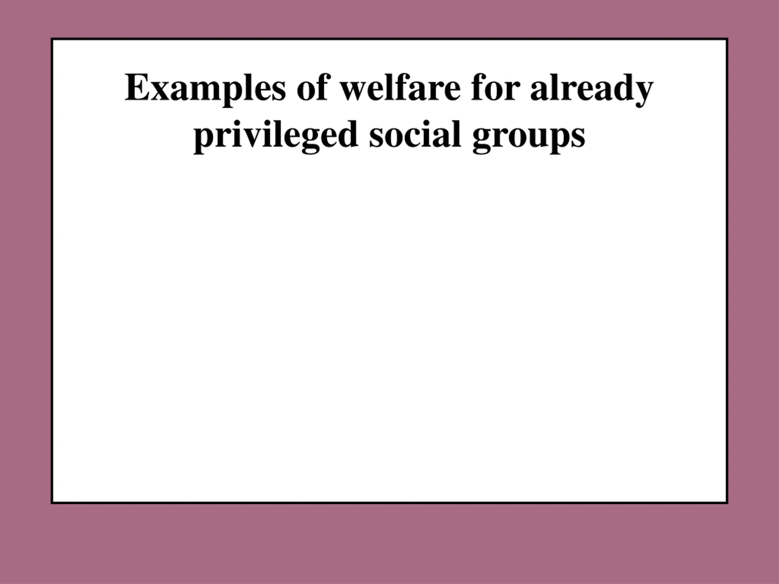 Examples of welfare for already privileged social groups Students: tuition subsidies
