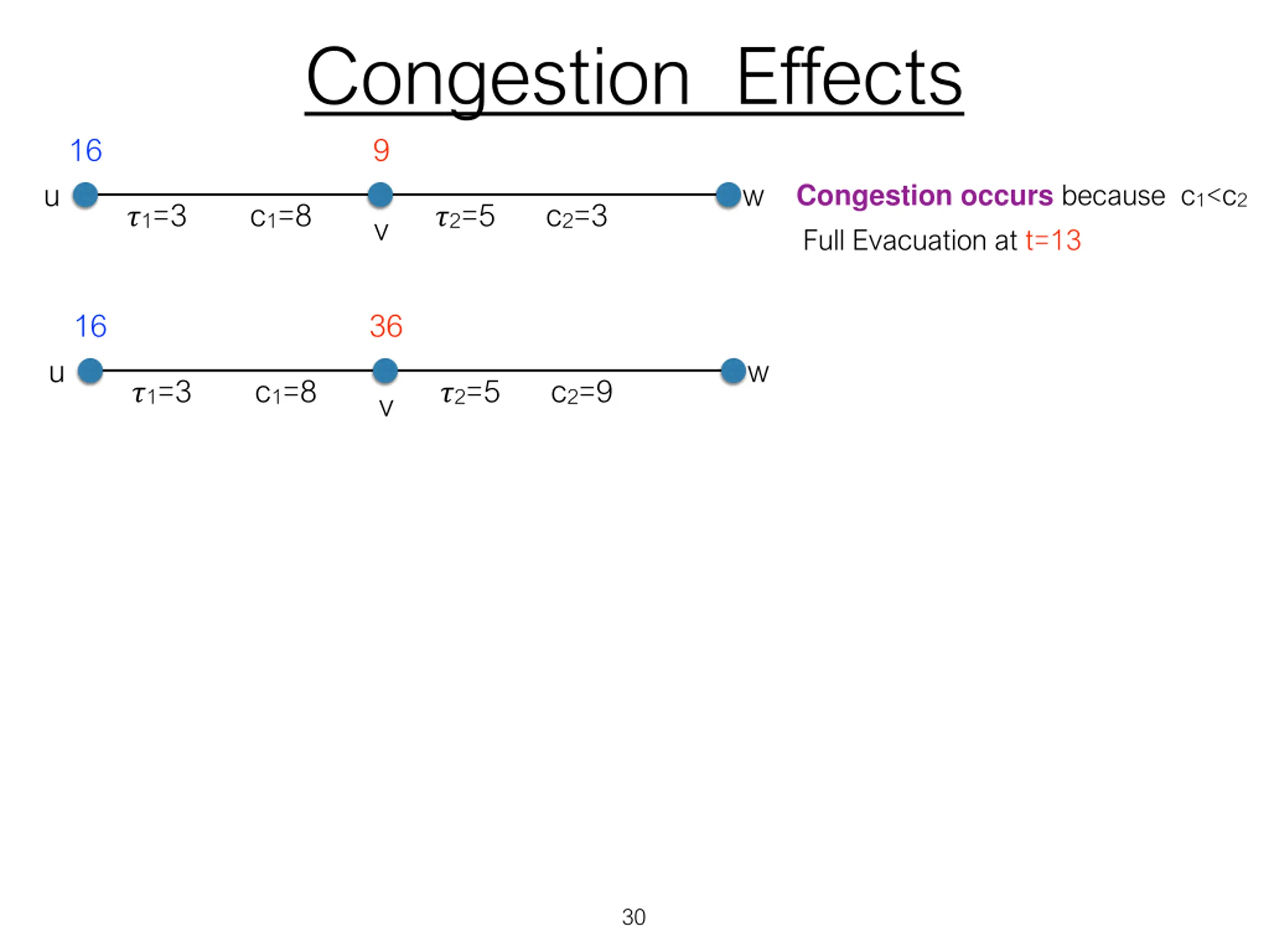 Congestion Effects 9 16 u w Congestion occurs because c1<c2 Full Evacuation at t=13 ?1=3 c1=8 ?2=5 c2=3 v 29
