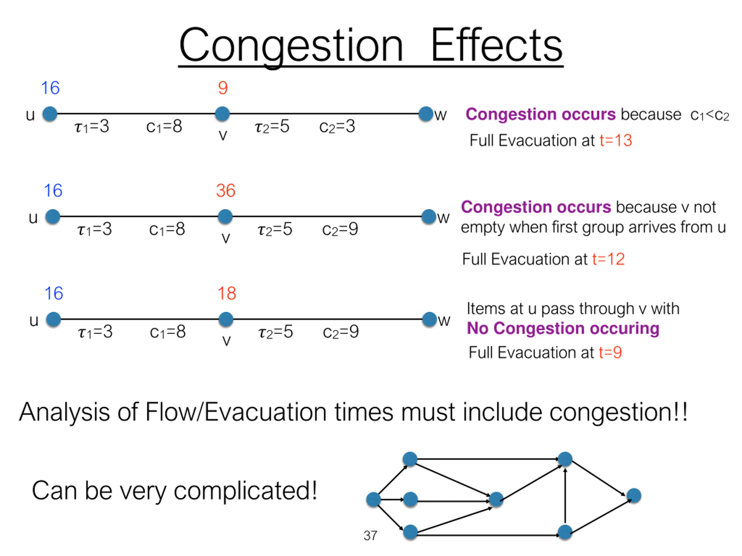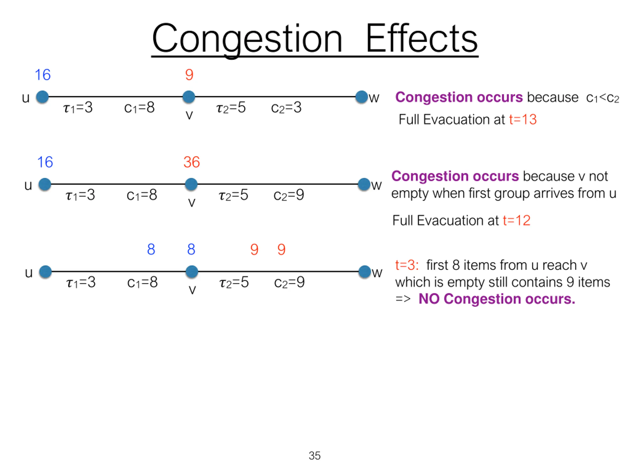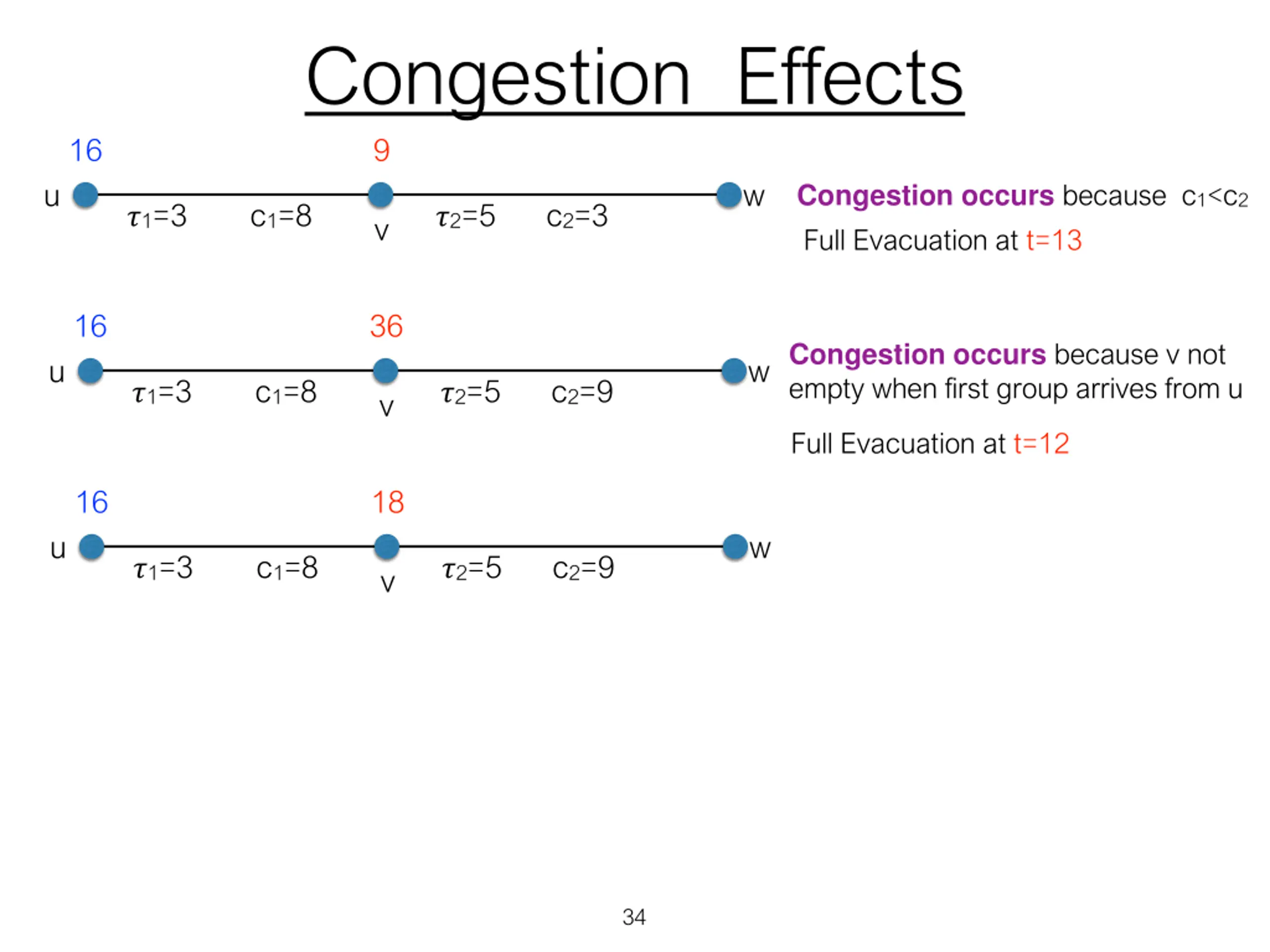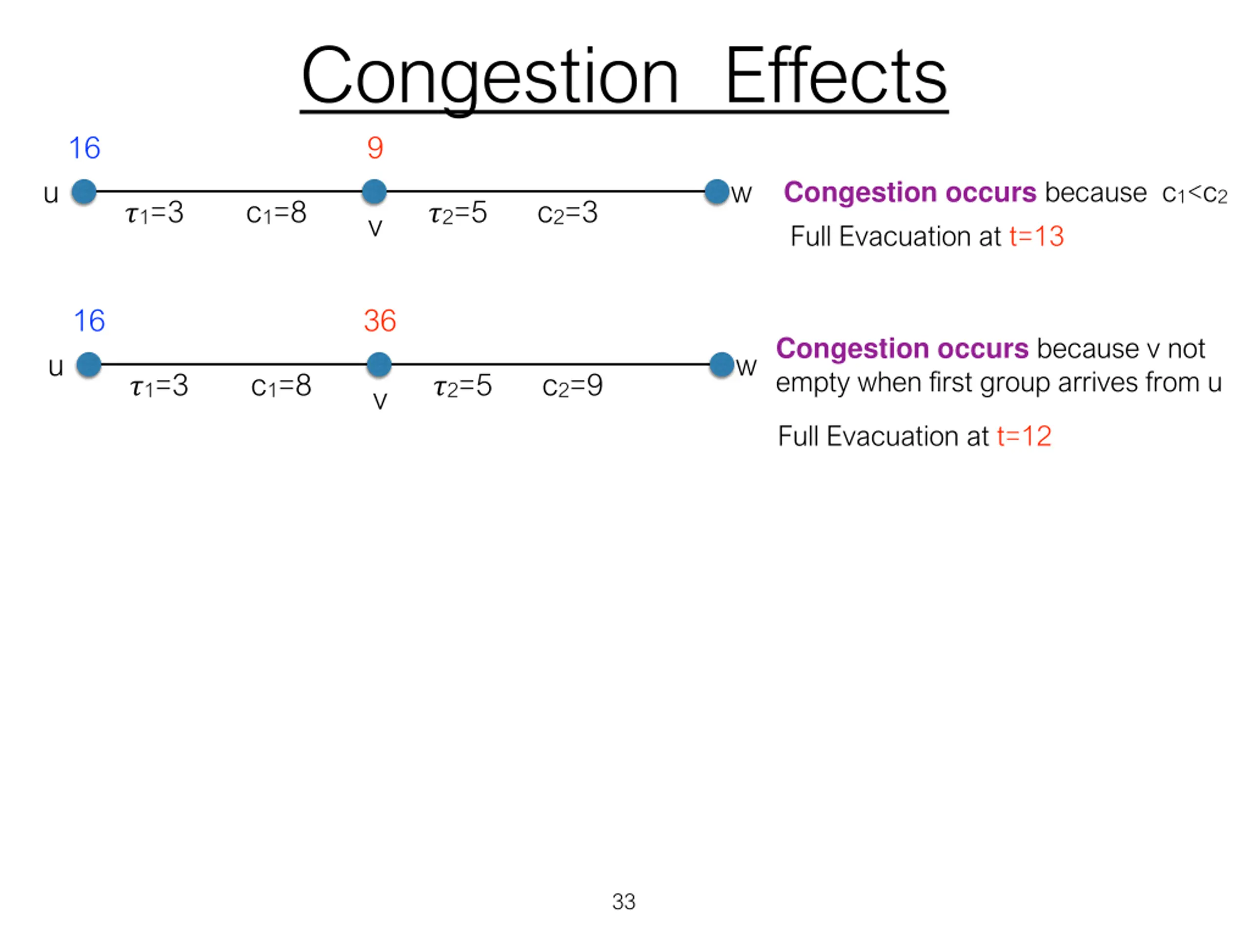 Congestion Effects 9 16 u w Congestion occurs because c1<c2 Full Evacuation at t=13 ?1=3 c1=8 ?2=5 c2=3 v 16 36 u w ?1=3 c1=8 ?2=5 c2=9 v 30