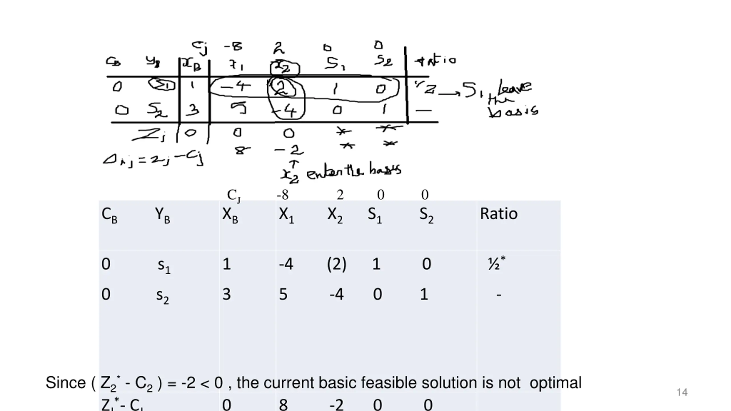 CJ -8 2 0 0 CB YB XB X1 X2 S1 S2 Ratio * 0 s1 s2 1 -4 (2) 1 0 0 3 5 -4 0 1 - Since ( Z2*- C2) = -2 < 0 , the current basic feasible solution is not optimal 14 ZJ*- CJ 0 8 -2 0 0