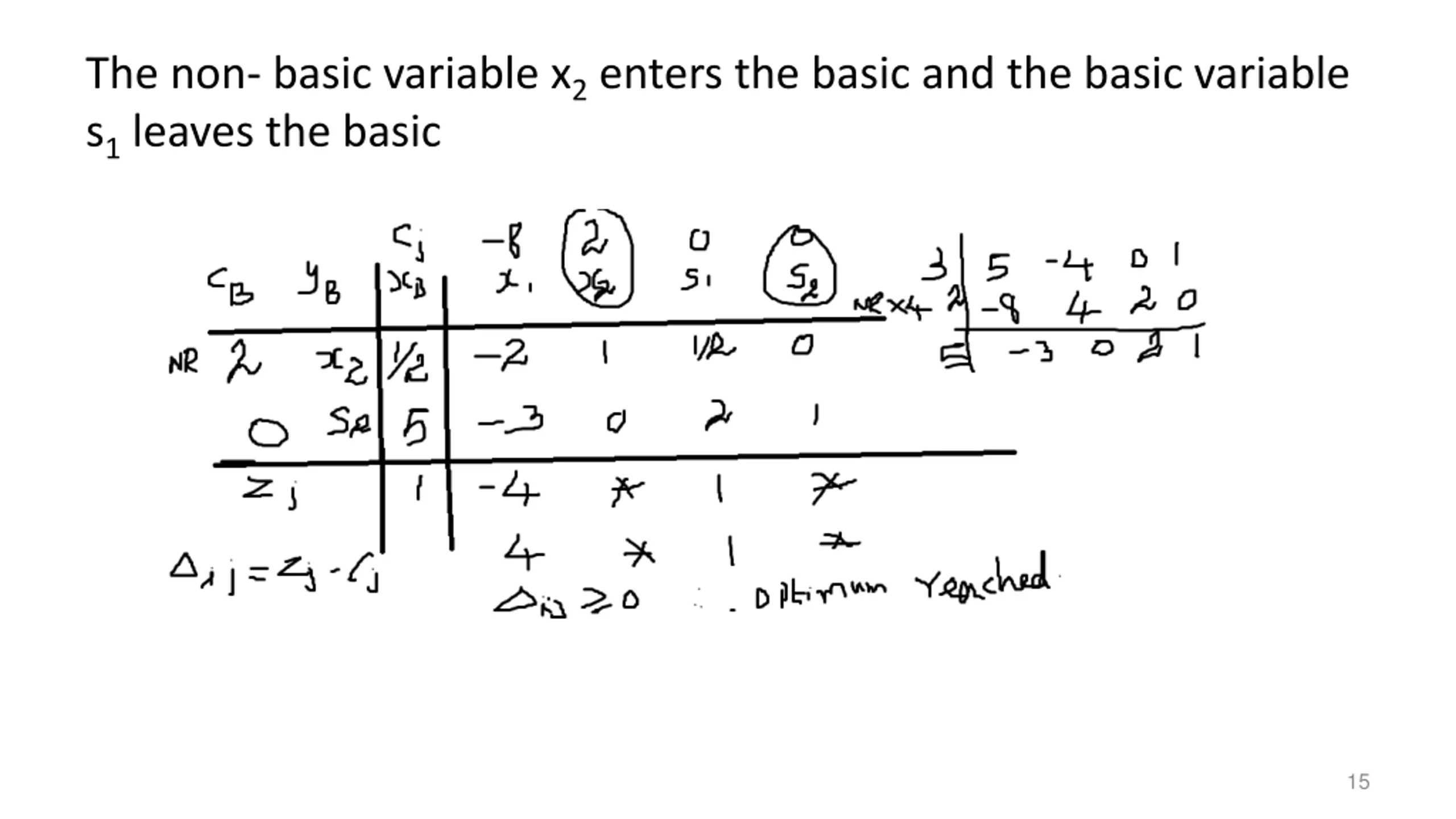 The non- basic variable x2enters the basic and the basic variable s1leaves the basic 15