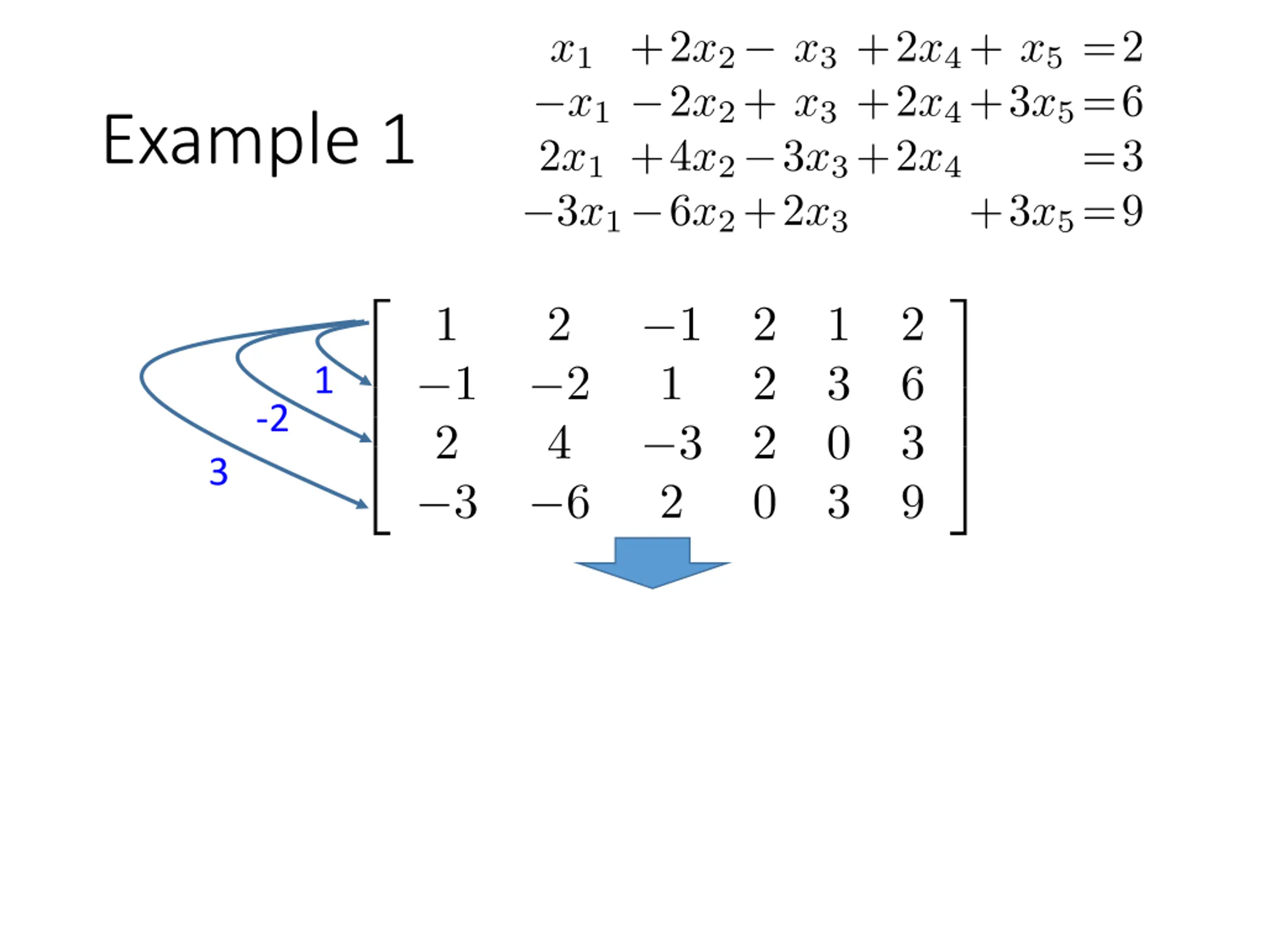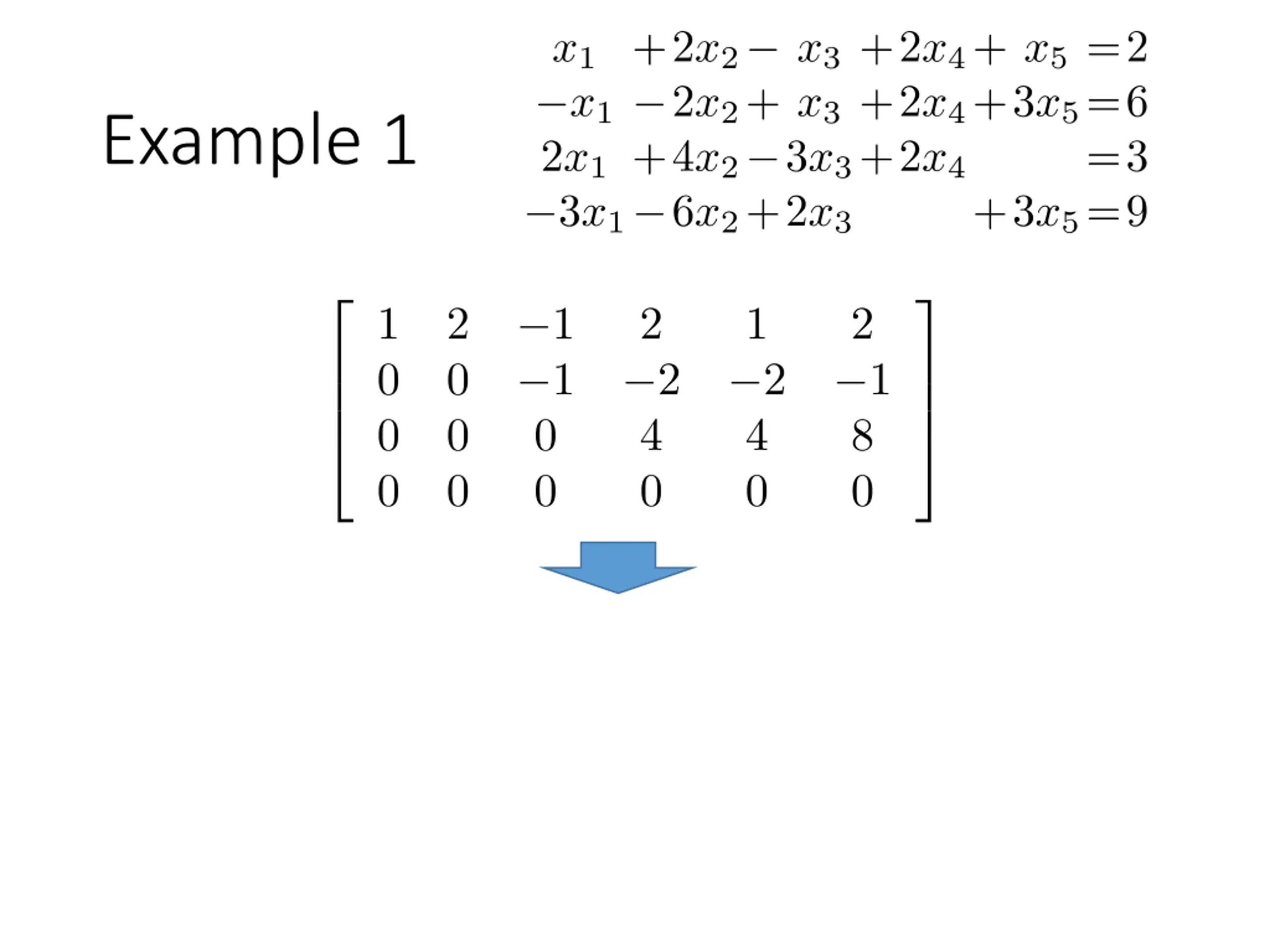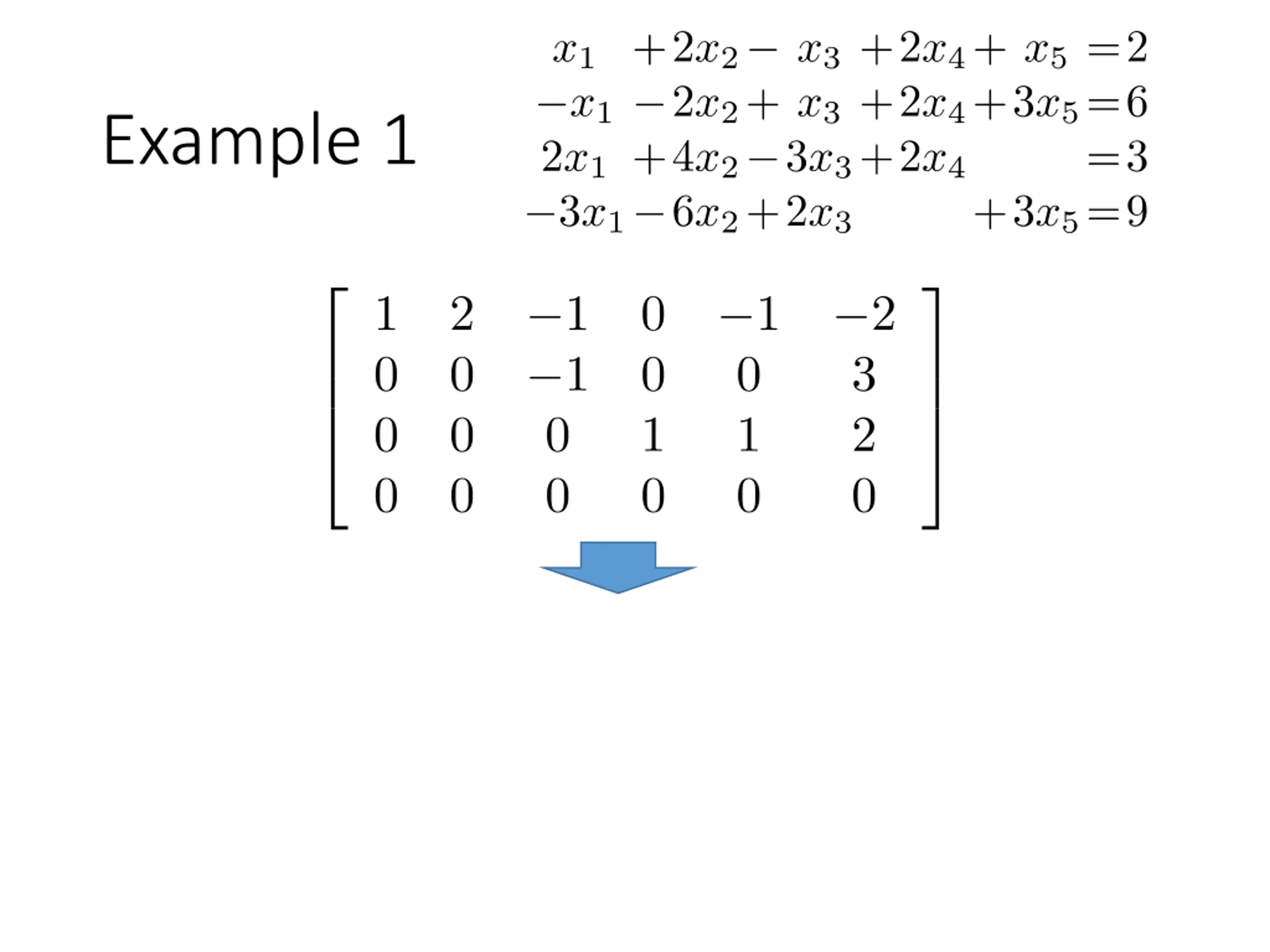 x1 x4 x5 x2 x3 b Example 1 ?1 ?2 ?3 ?4 ?5 5 2?2+ ?5 ?2 3 2 ?5 ?5 5 0 3 2 0 1 0 0 2 1 0 0 0 + +?5 = ?2 = 1 1