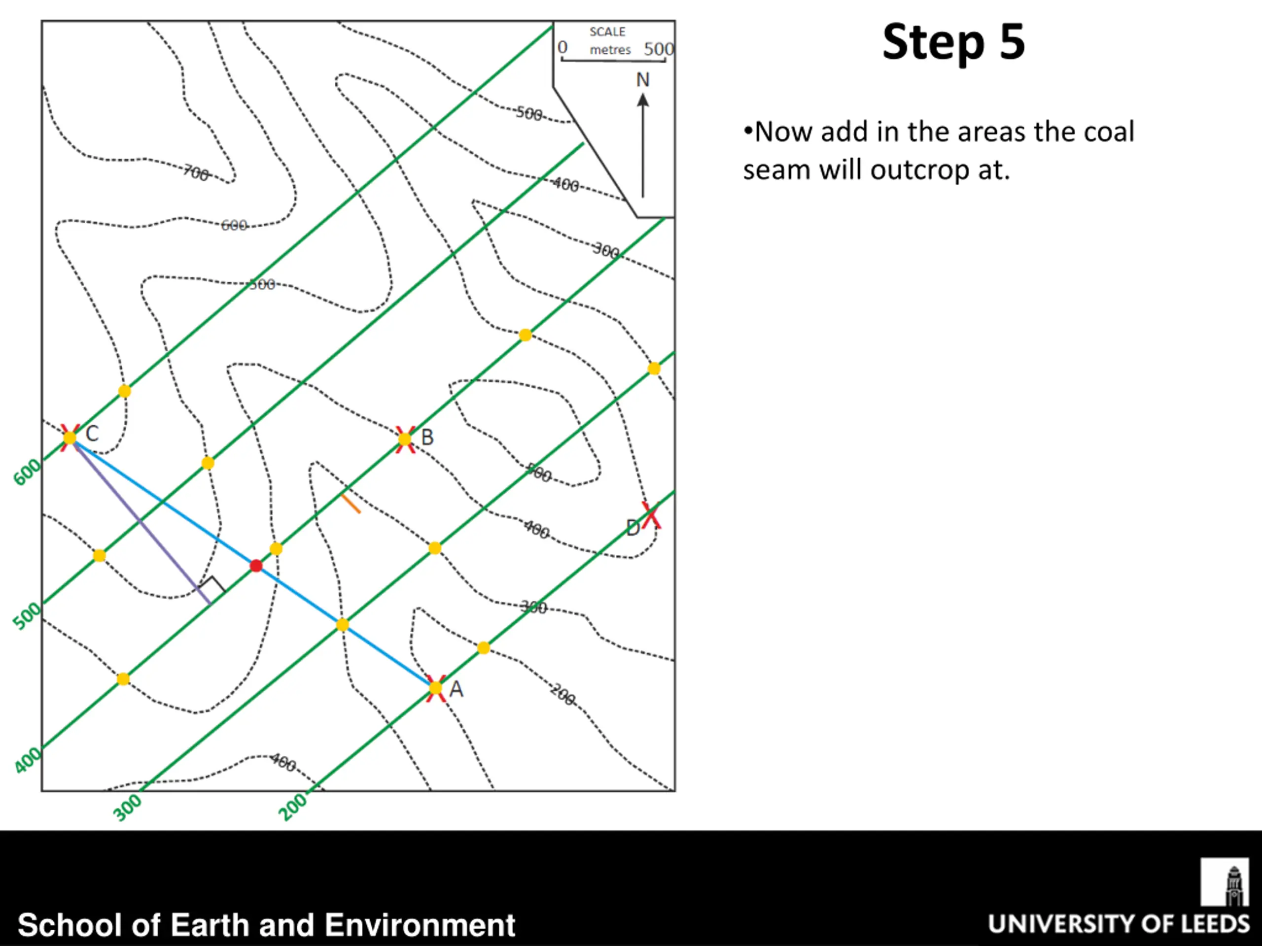 Step 5 Now add in the areas the coal seam will outcrop at. School of Earth and Environment