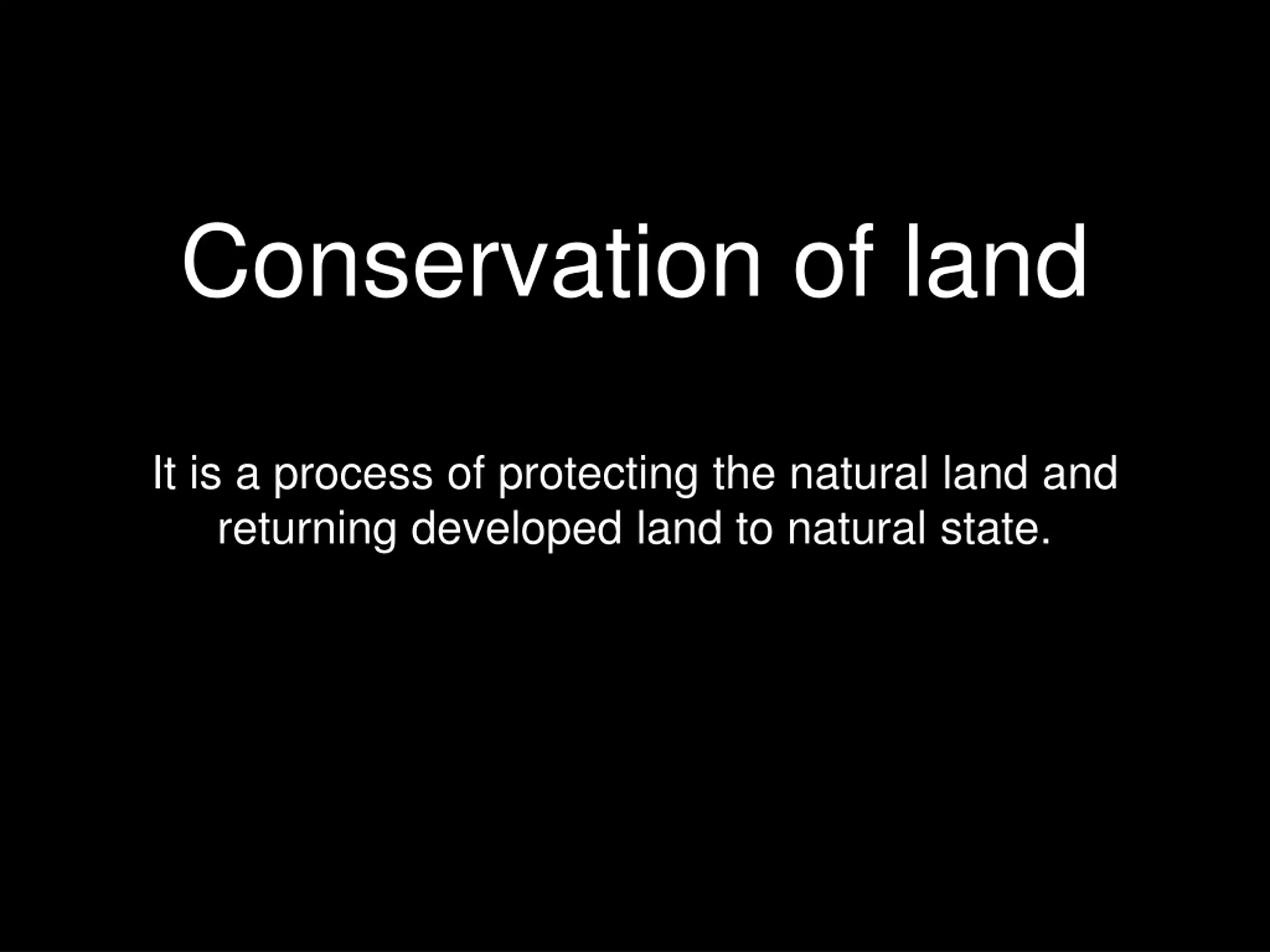 Conservation of land It is a process of protecting the natural land and returning developed land to natural state.