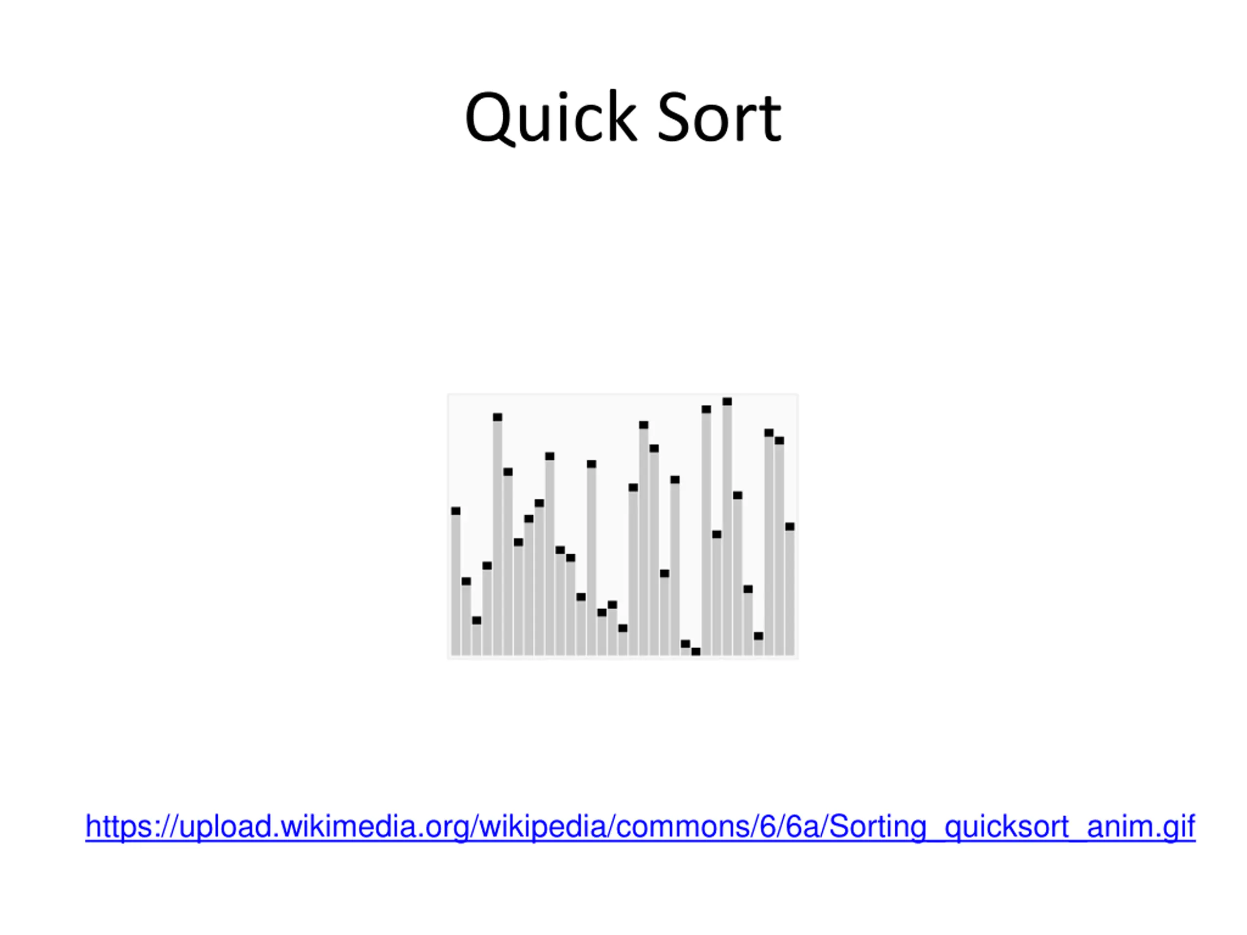 Quick Sort https://upload.wikimedia.org/wikipedia/commons/6/6a/Sorting_quicksort_anim.gif