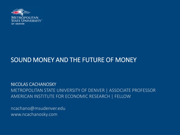 SOUND MONEY AND THE FUTURE OF MONEY SOUND MONEY AND THE FUTURE OF MONEY NICOLAS CACHANOSKY NICOLAS CACHANOSKY METROPOLITAN STATE UNIVERSITY OF DENVER | ASSOCIATE PROFESSOR AMERICAN INSTITUTE FOR ECONOMIC RESEARCH | FELLOW ncachano@msudenver.edu www.ncachanosky.com