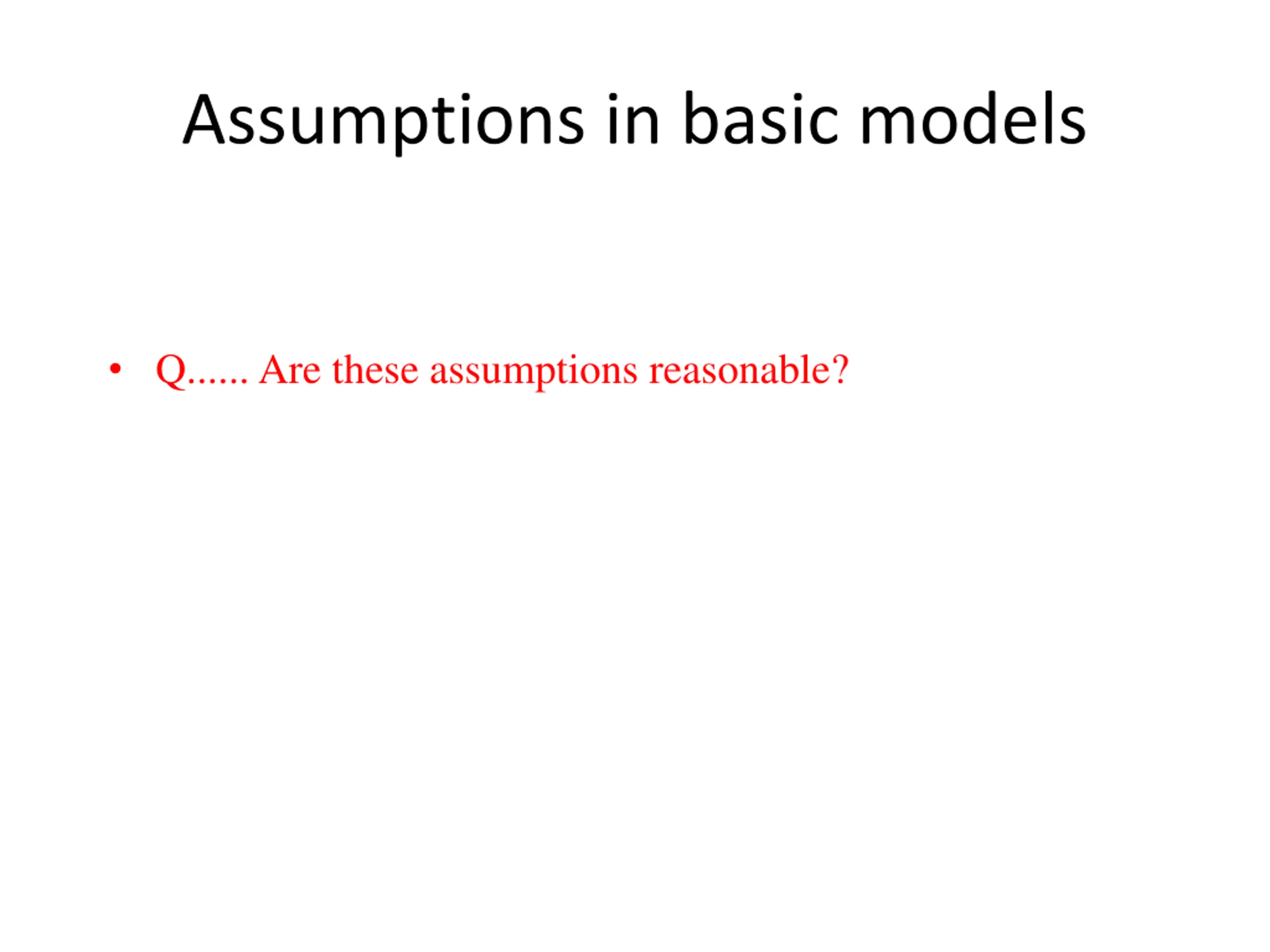 Assumptions in basic models Q...... Are these assumptions reasonable?