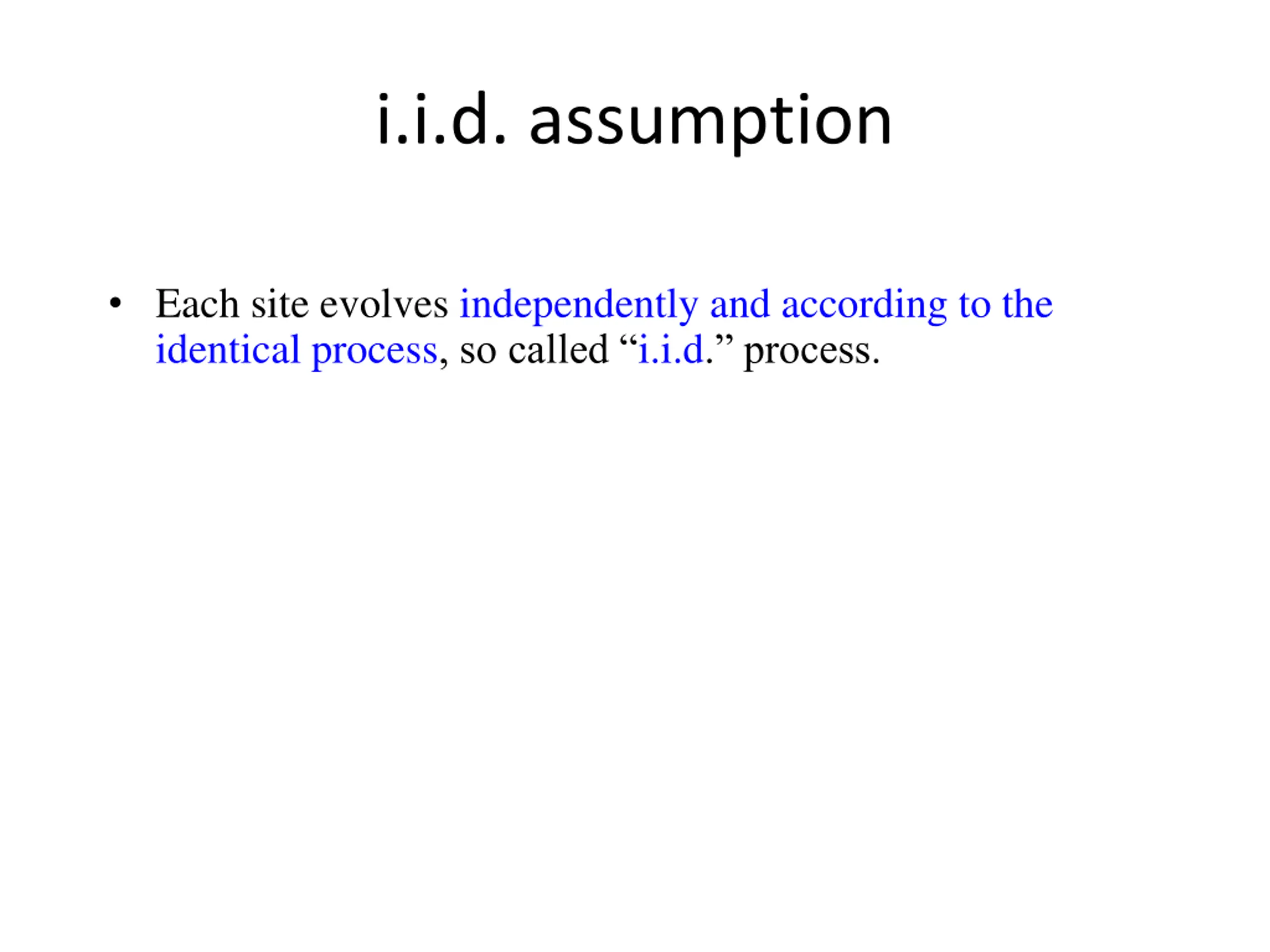 i.i.d. assumption Each site evolves independently and according to the identical process, so called i.i.d. process.