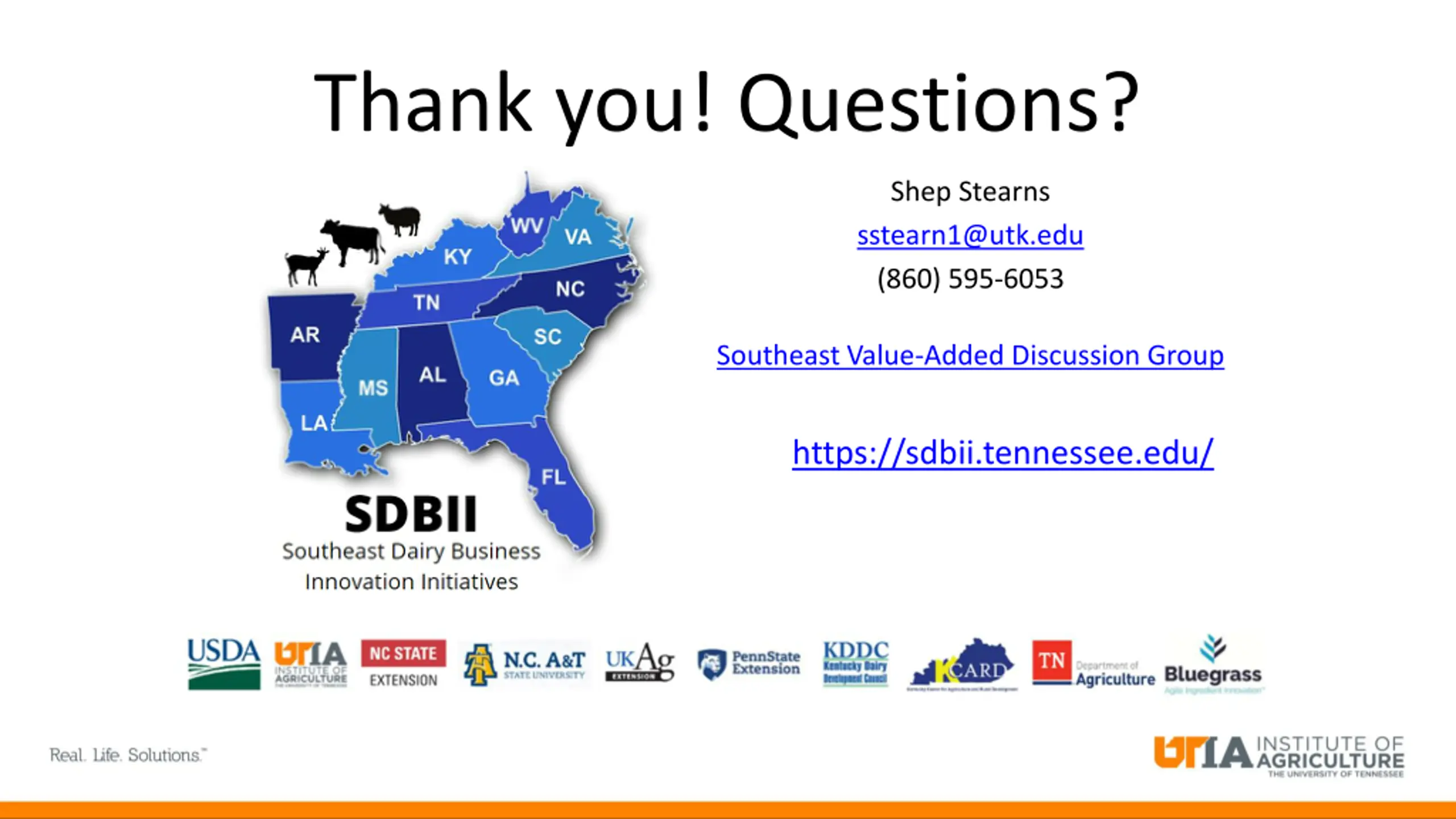 Thank you! Questions? Shep Stearns sstearn1@utk.edu (860) 595-6053 Southeast Value-Added Discussion Group https://sdbii.tennessee.edu/