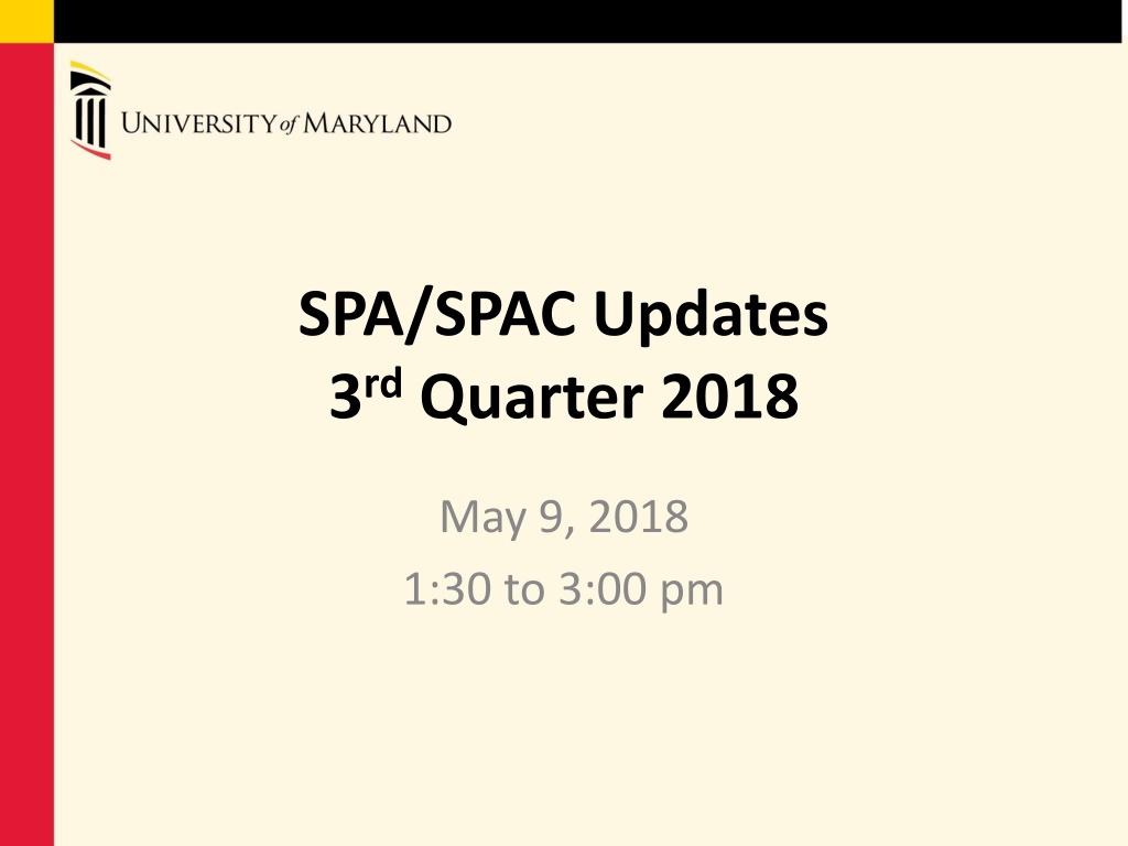 SPA/SPAC Updates 3rdQuarter 2018 May 9, 2018 1:30 to 3:00 pm