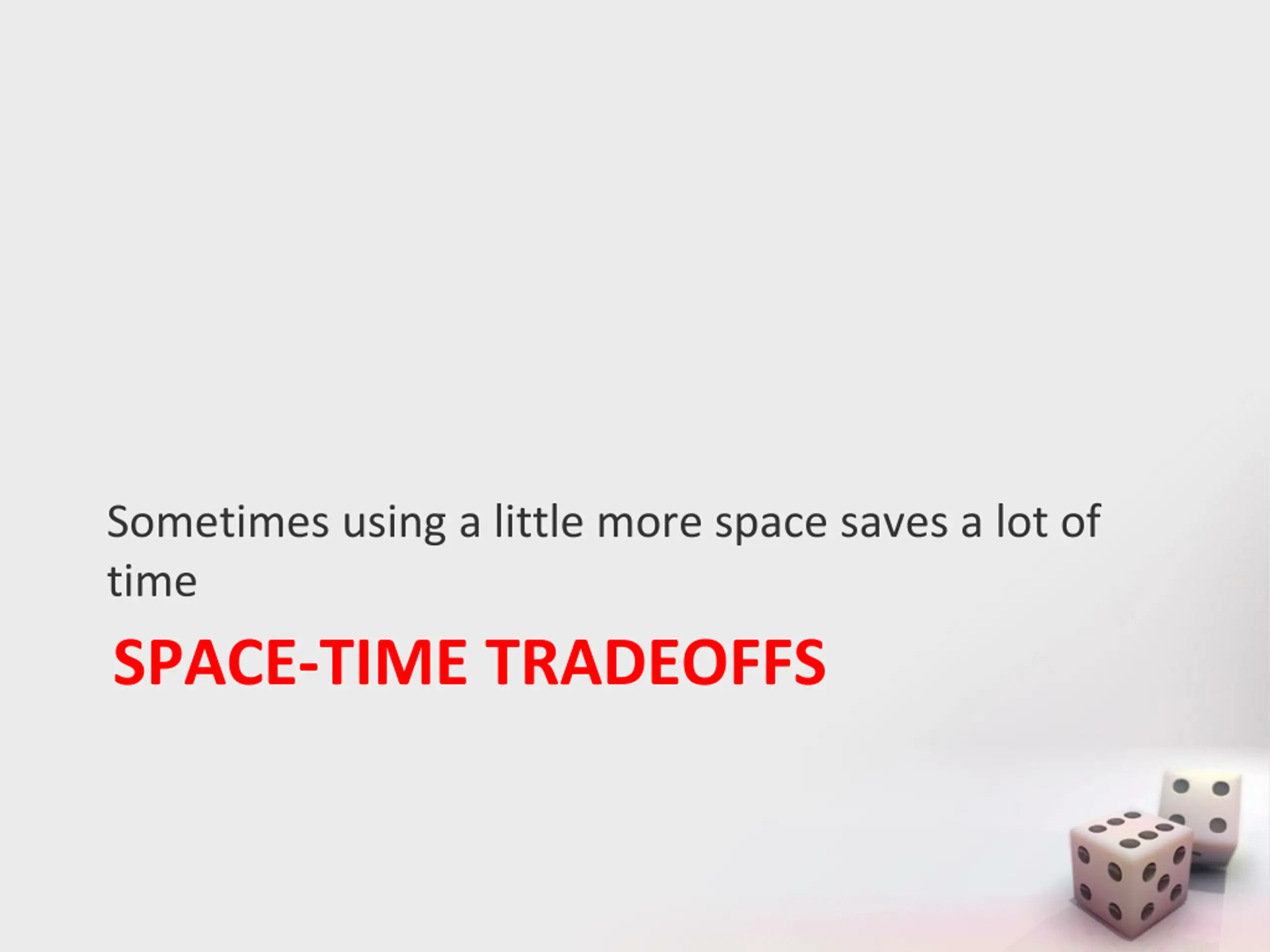 Sometimes using a little more space saves a lot of time SPACE-TIME TRADEOFFS